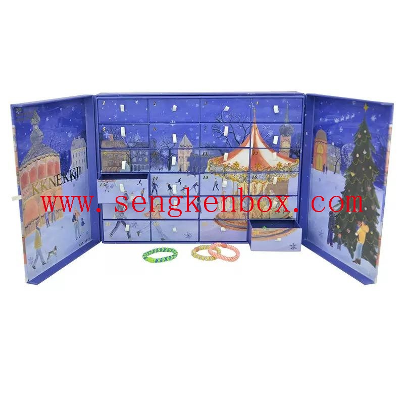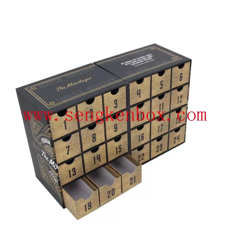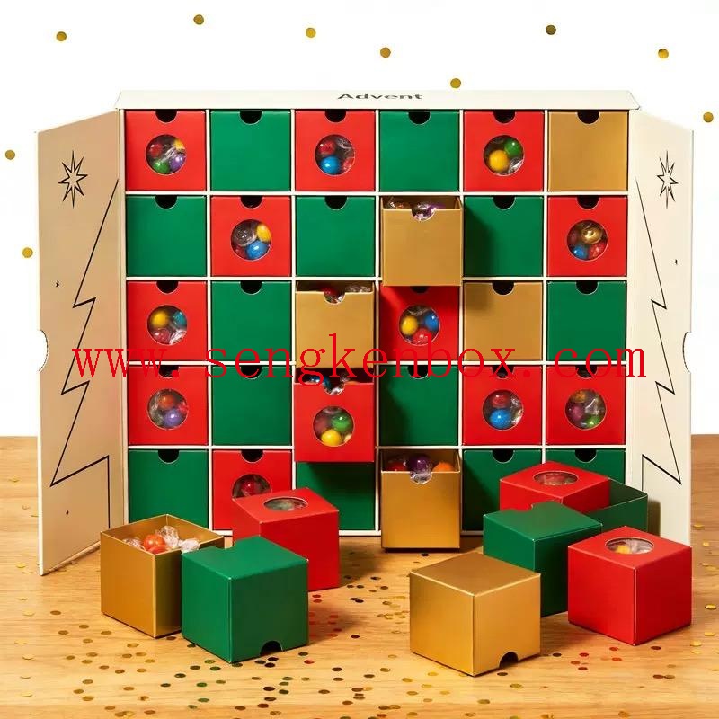 This custom advent calendar box is a top-selling packaging solution for Christmas countdowns. Made of thick rigid cardboard with premium finishes like UV printing and gold stamping, it offers both durability and a luxurious feel. Available in 12/24/25-compartment sizes with a drawer-style design, it fits cosmetics, candy, wine, jewelry, and more—perfect for the Western holiday market. We provide one-stop service from design to sampling, with low MOQ and fast lead times to help your brand capture the Christmas market!