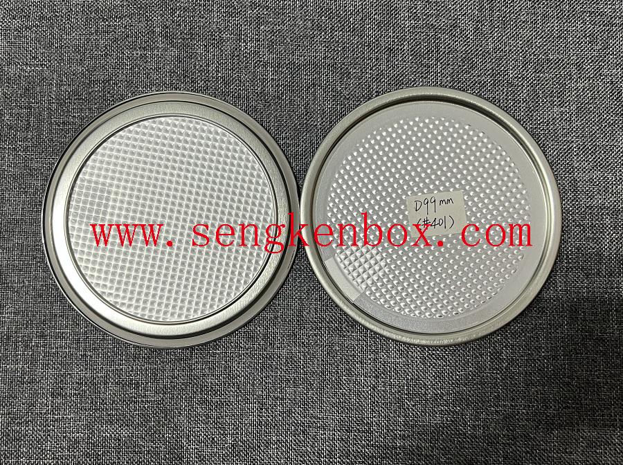 This is 99mm #401 Aluminum Foil Easy Peel Off Lids, It is food grade and with tinplate ring,they are used on composite paper tubes/cans.