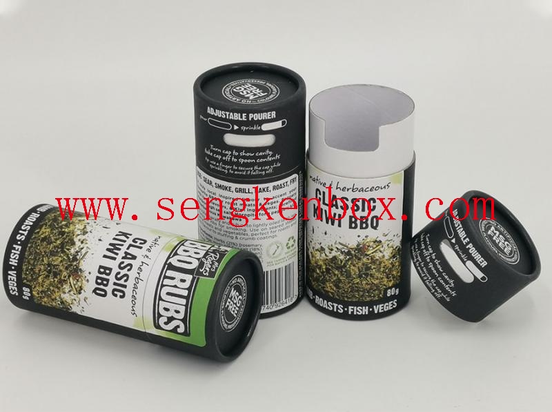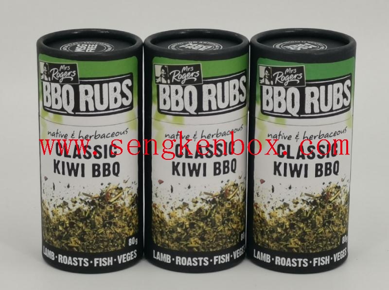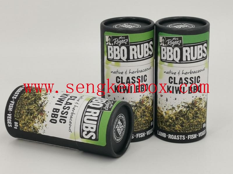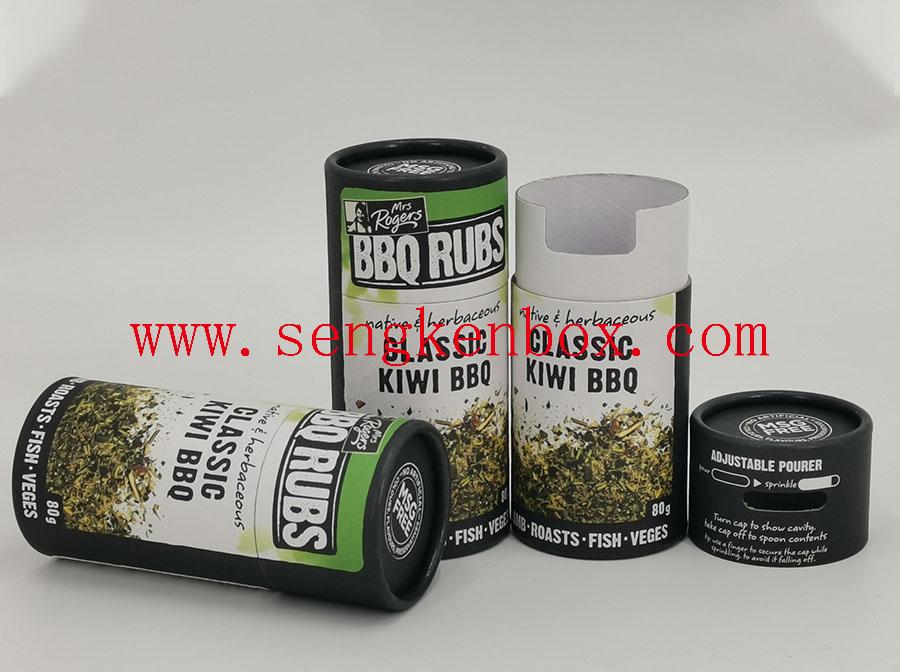 This A Paper Cylinder With A Spout For Pouring Barbecue Seasoning is for packing Barbecue seasonings,It is a food grade composite paper canister with grease-proof aluminum foil liner.