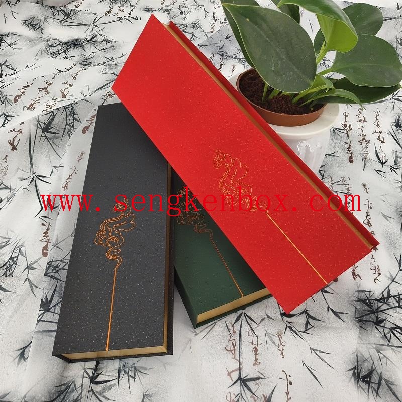 This incense stick gift box is made of high-end specialty paper, integrated with auspicious cloud gold stamping patterns and gold frame edging technology. Three colors of Chinese red, ink black and ink green interpret oriental aesthetics. The box is equipped with an acrylic single tube and sponge inner lining, specially designed for long incense sticks to prevent moisture and folding, and is also matched with metal incense holder accessories to enhance the user experience. The flip-top structure is easy to open and close, and LOGO, patterns and sizes can be customized according to needs. It is suitable for scenarios such as aromatherapy store wholesale, high-end business gifting and festival presents, and is a quality choice for incense stick packaging and storage.