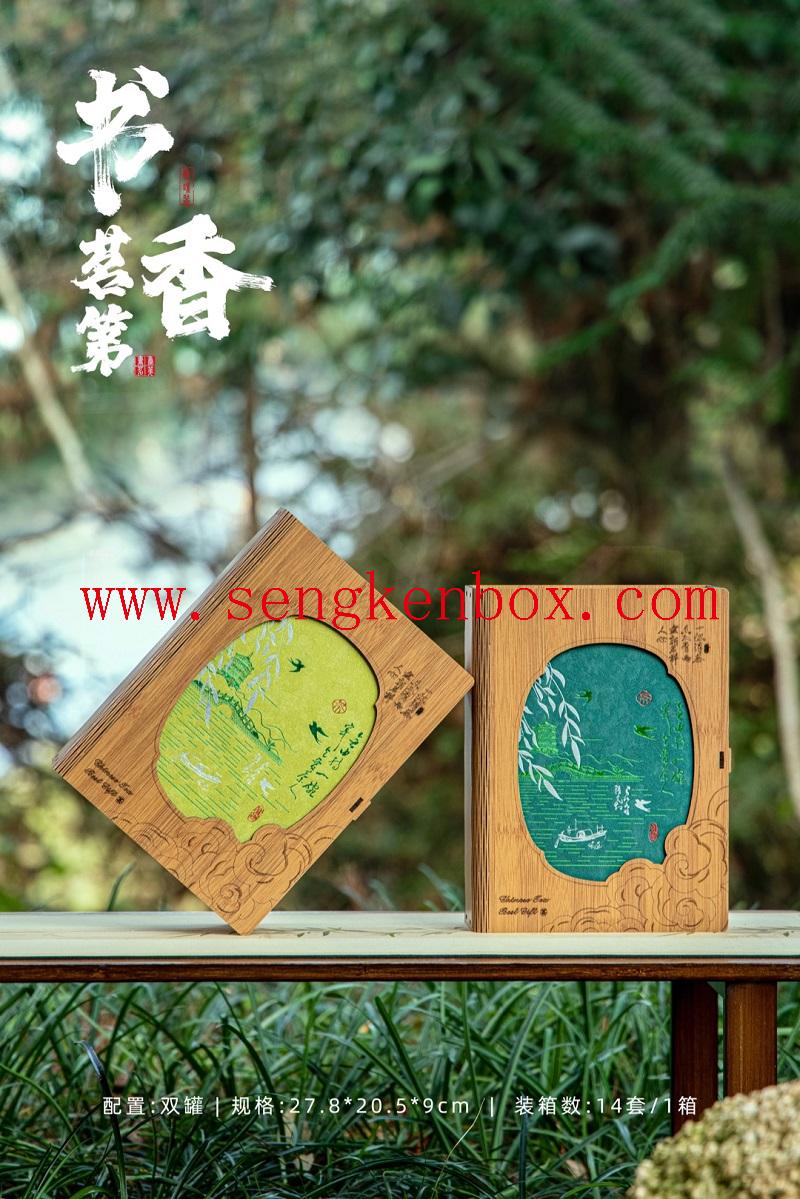 Bamboo Pattern Wooden Tea Gift Box Empty Packaging for 2 Cans