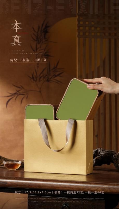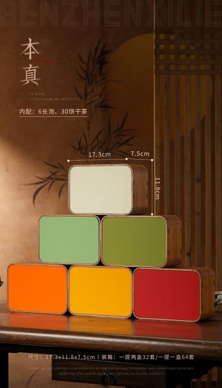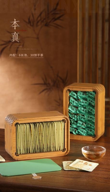 The Benzhen series bamboo-pattern tea gift box is designed with Chinese aesthetics as the core, made of imitation bamboo splicing technology to restore the natural bamboo texture. The rounded corner mortise and tenon structure combines beauty and practicality.