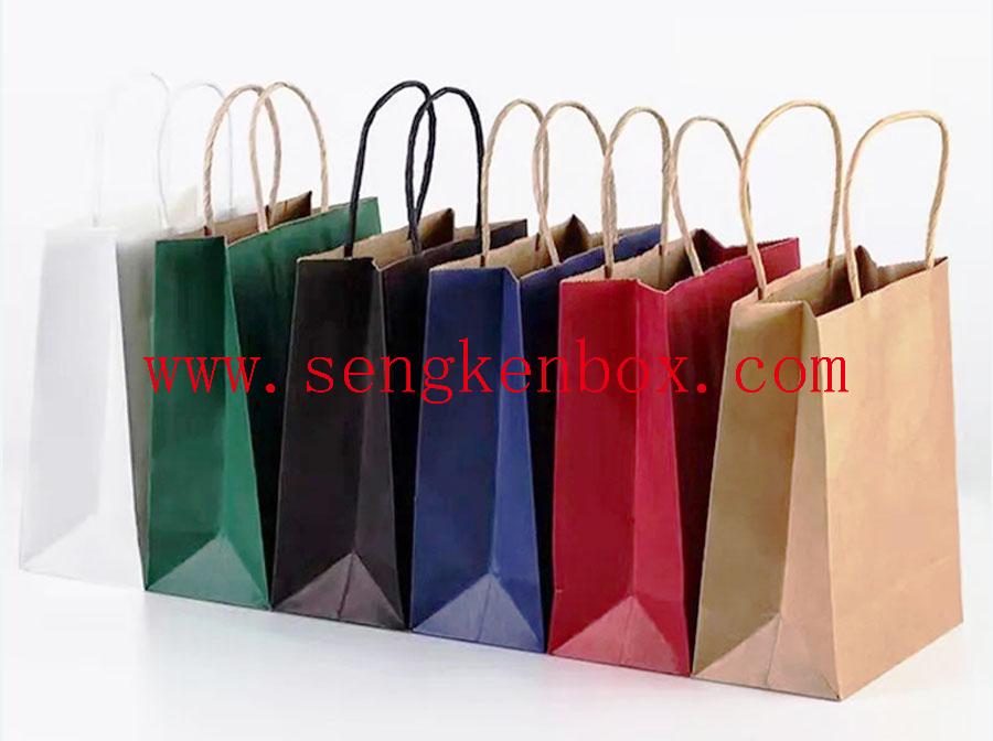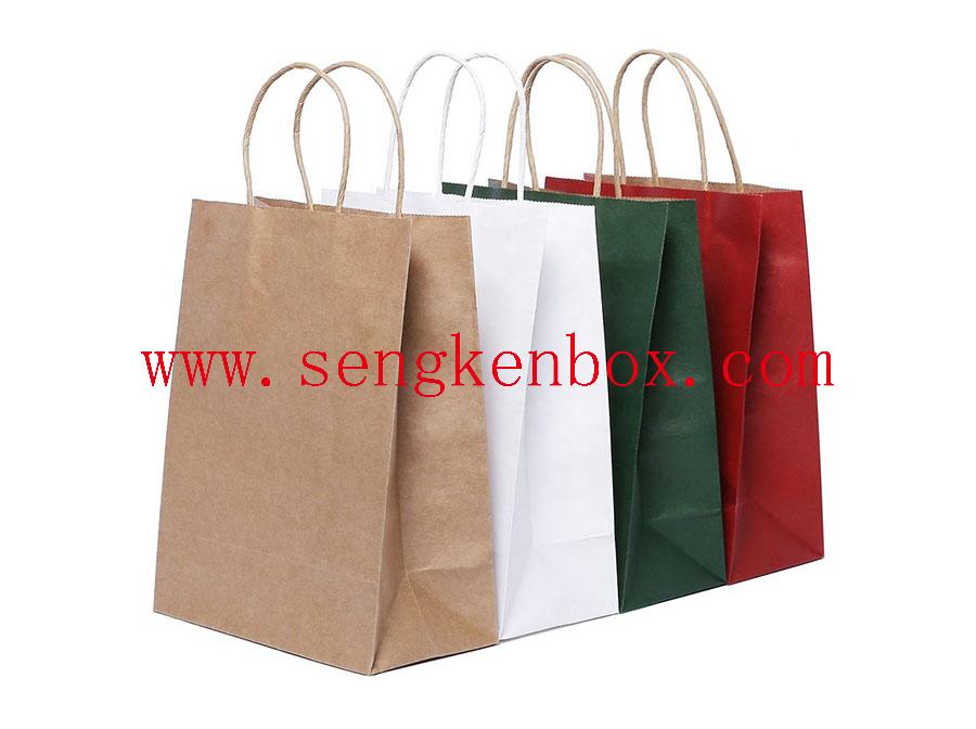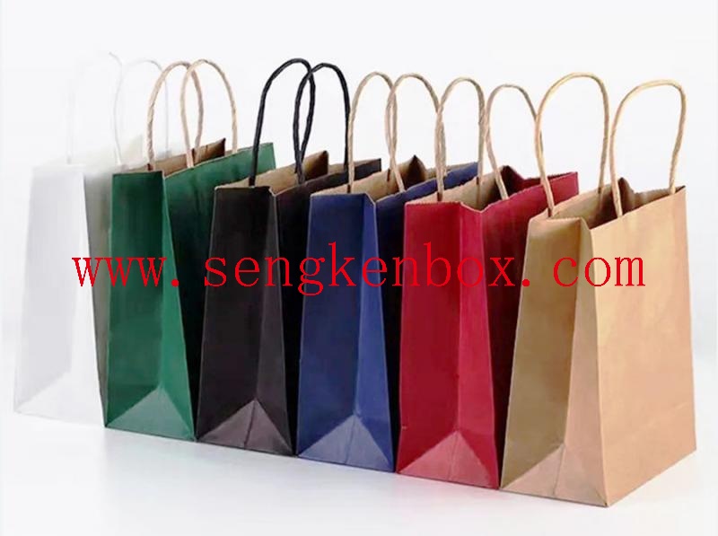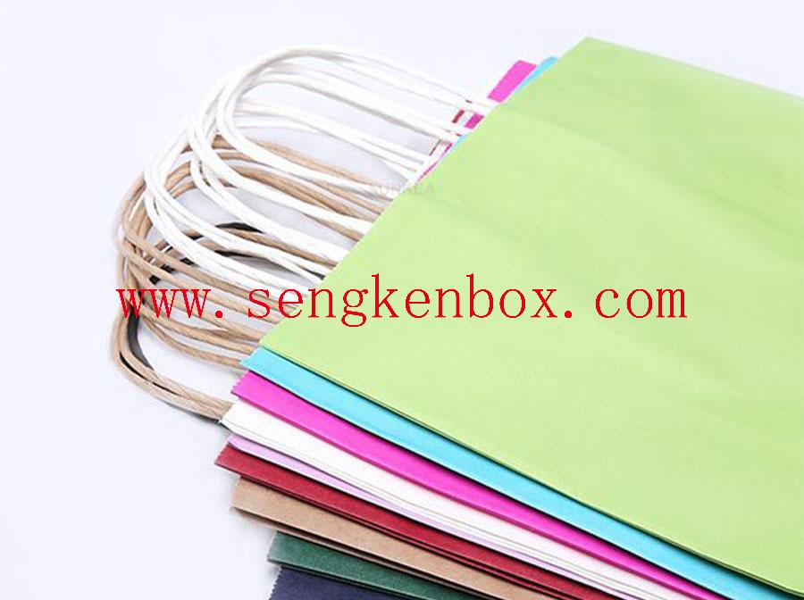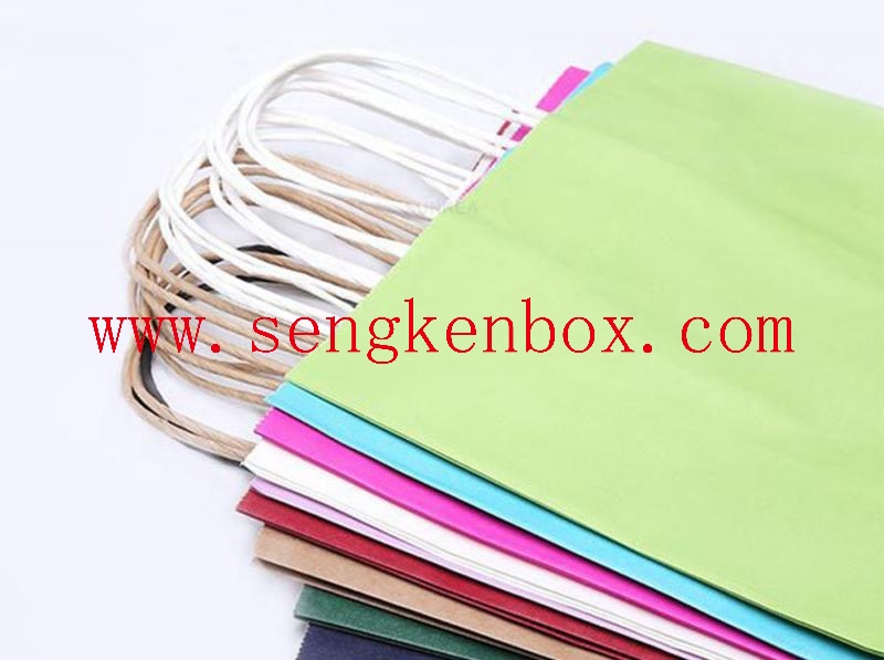 Material: 1) White Kraft Paper & Brown Kraft Paper; 2) Offset Paper; 3) Greaseproof Paper;4) Wax Paper;5) Foil Paper;6) Two layers paper or Lined Paper for the Biodegradable Printed Colored Kraft Twisted Handle Bag