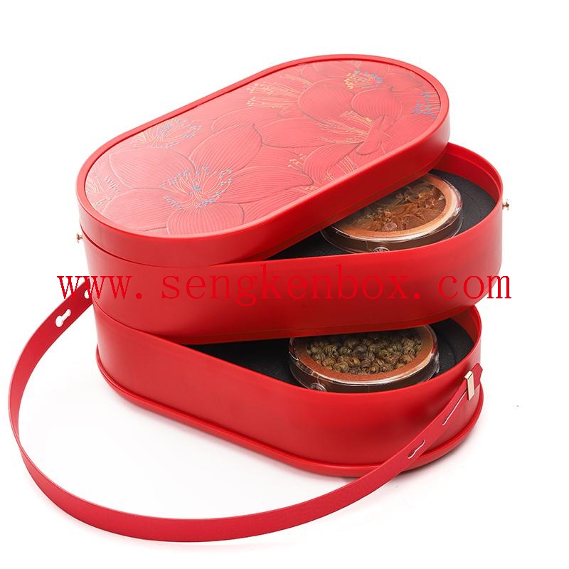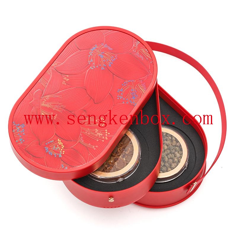 This Chinese-style double-layer portable bird's nest gift box features an elegant vibrant red color matched with delicate line-drawn floral lid, full of traditional oriental charm. It adopts independent two-layer design with exclusive shockproof EVA foam inner liner, firmly holds small glass bottles to prevent shaking and damage during transportation. Equipped with simple reinforced handle, easy to carry and decent for gift giving.