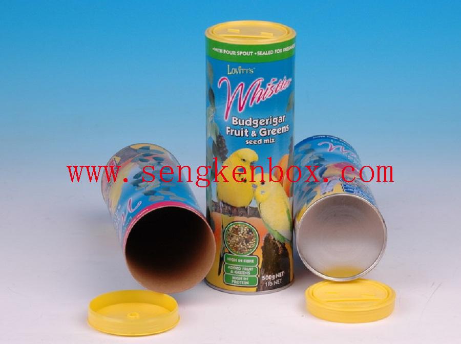 This Shaker Paper Tube is for packing birds seeds,It is a composite food grade paper canister with grease-proof aluminum foil liner and plastic shaker lid.