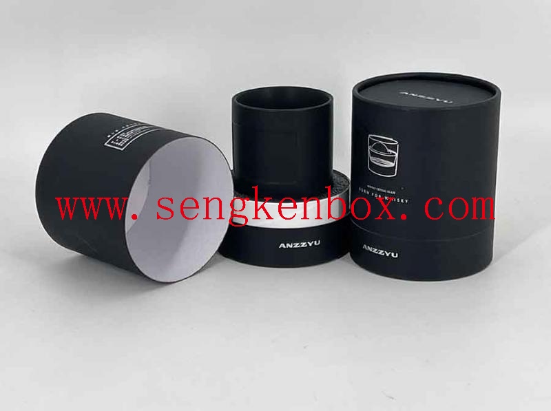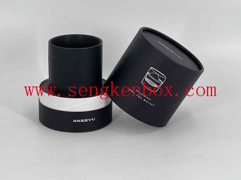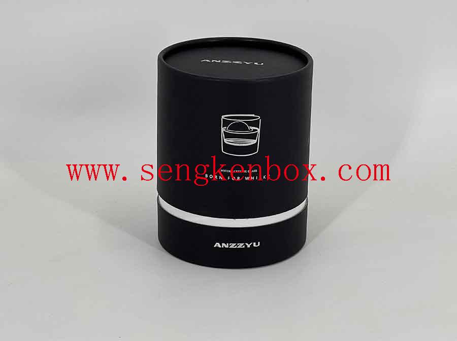Material: Middle Kraft Paper Core+Inner Coated AL Foil Liner+Outside 157g White Kraft Paper with Printing logo+Glossy Varnishing+Metal Buckled Lid for the Black Whisky Crystal Glass Gift Packaging Can