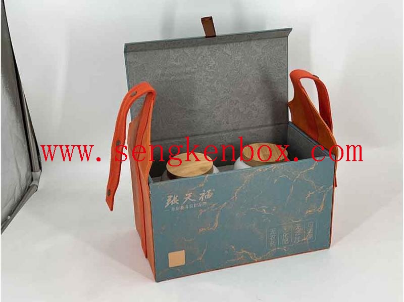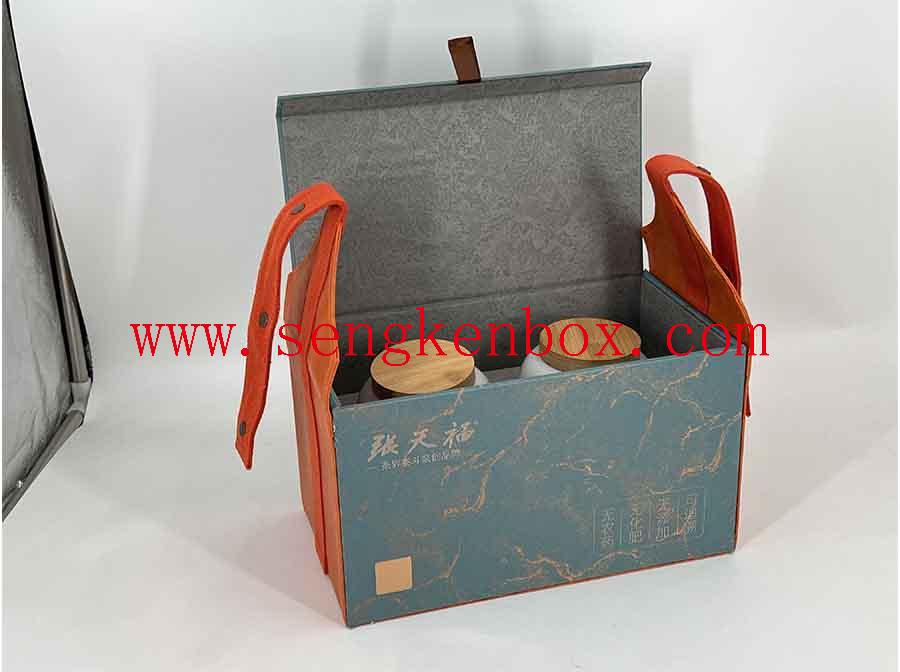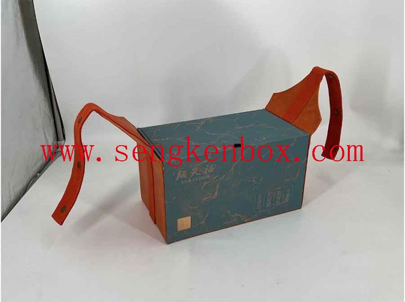 Printing: CMYK+Pantone Color ( As per customer's request) for this Paper Gift Box With Leather Portable