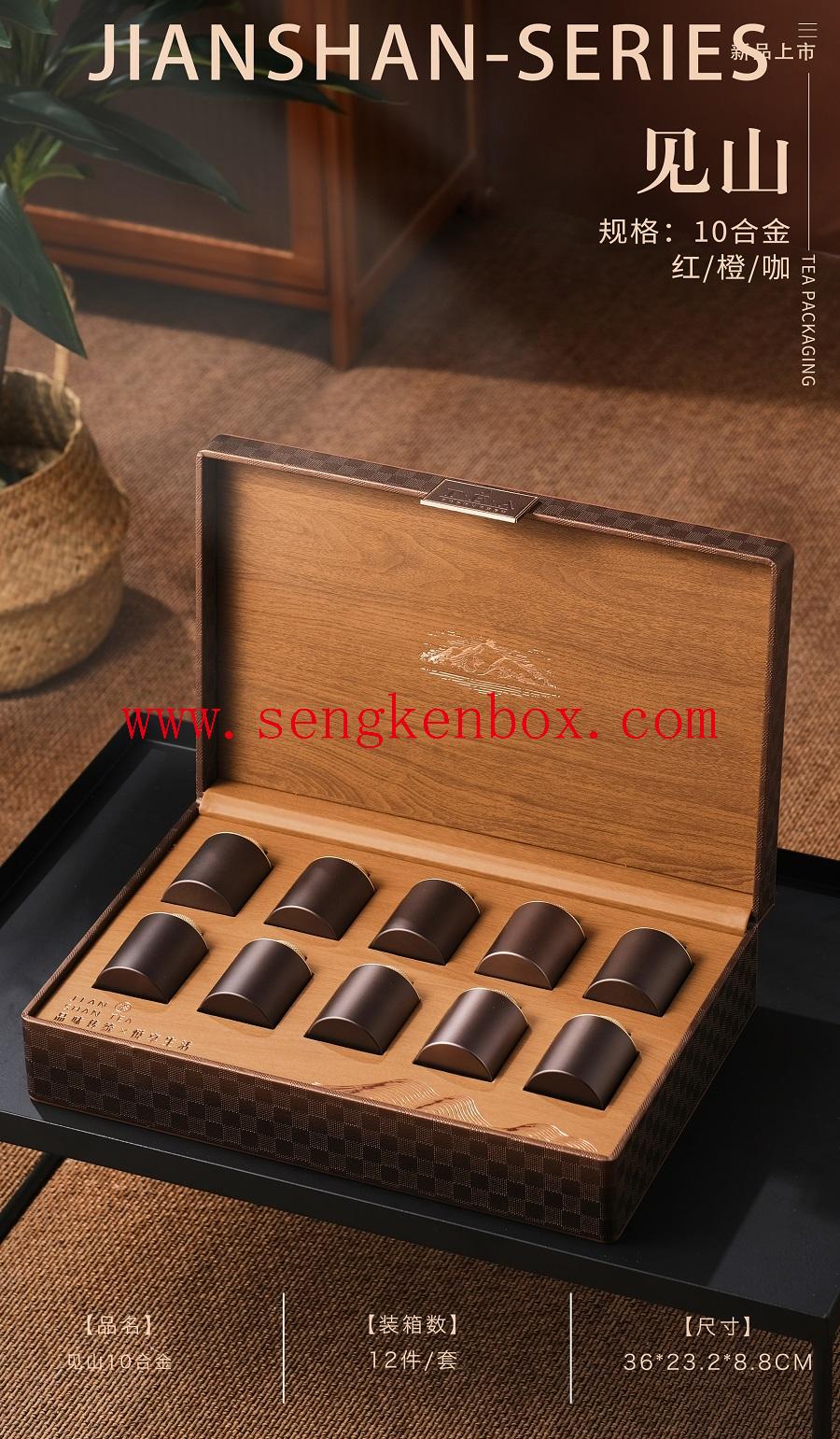 Tea Gift Packaging Leather Box with Alloy Jars and Cup Size is 345*215*150mm,size can be changed as per your request!