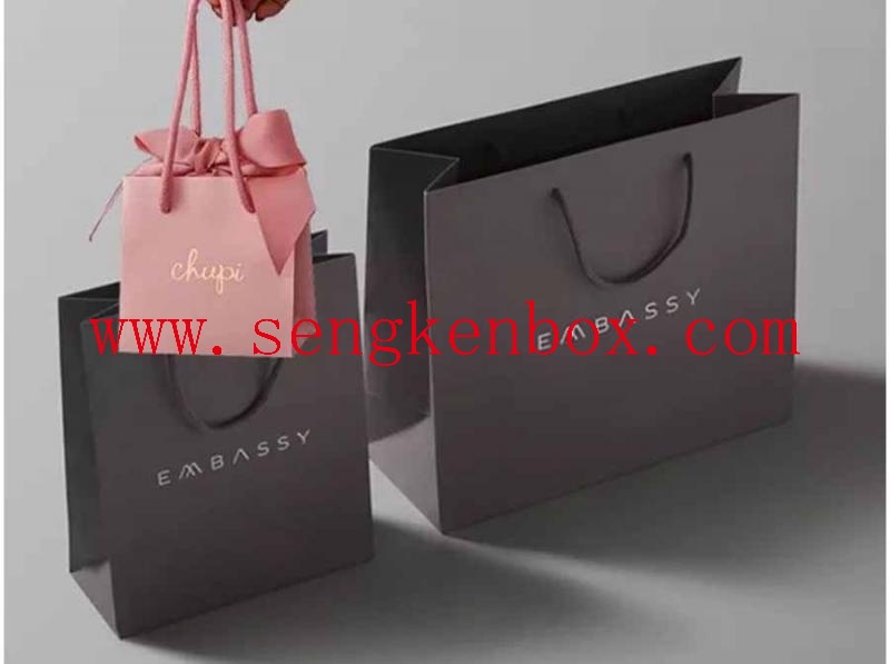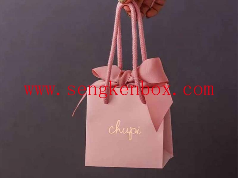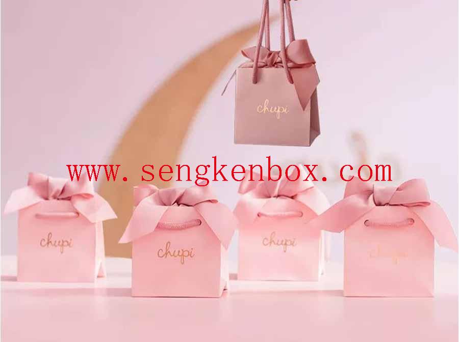 Printing: CMYK+Pantone Color ( As per customer's request) for this Jewellery Paper Bag With Ribbon Handles