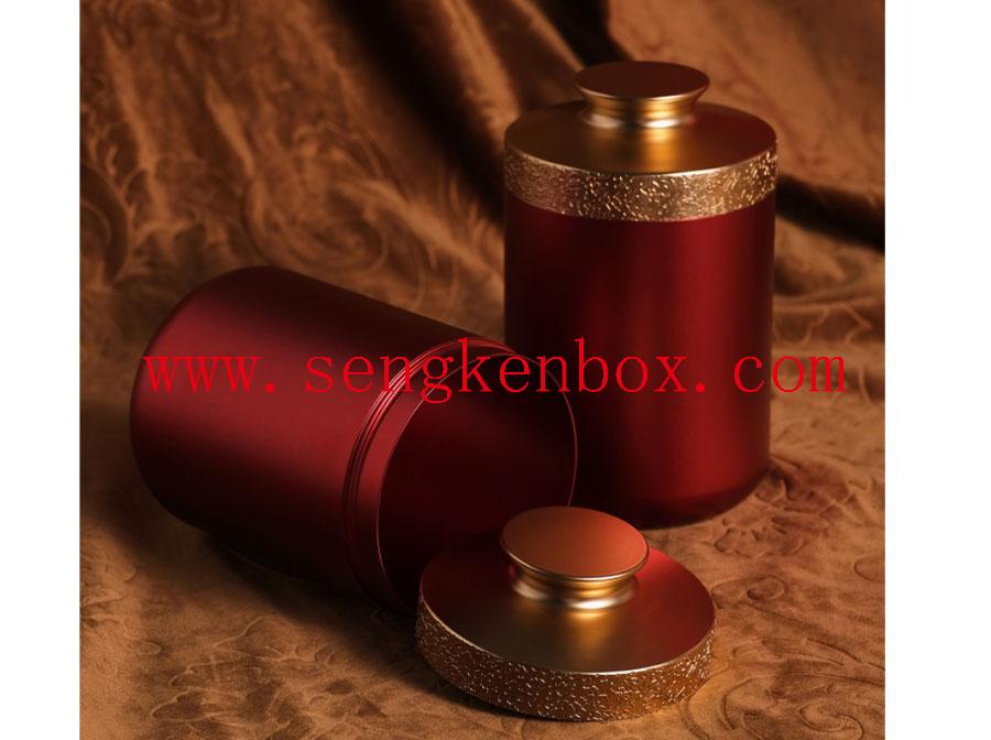 This China Red Two Metal Cans Leather Tea Box is for packing Champagne,It is a luxury gift box.