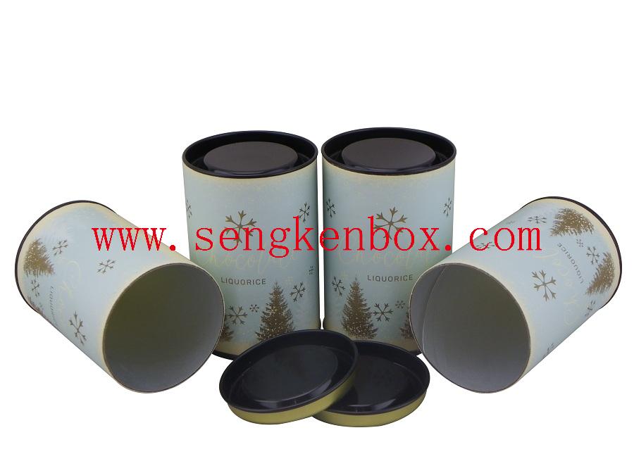 This Tin Lid Paper Cans is for packing Christmas Gift or Chocolate,It is a composite food grade canister with grease-proof aluminum foil liner.