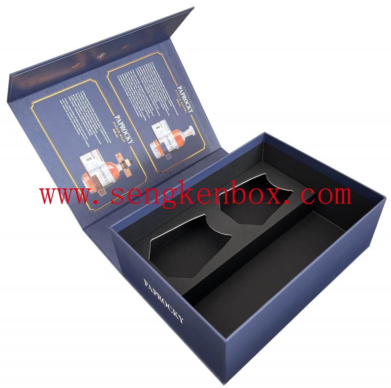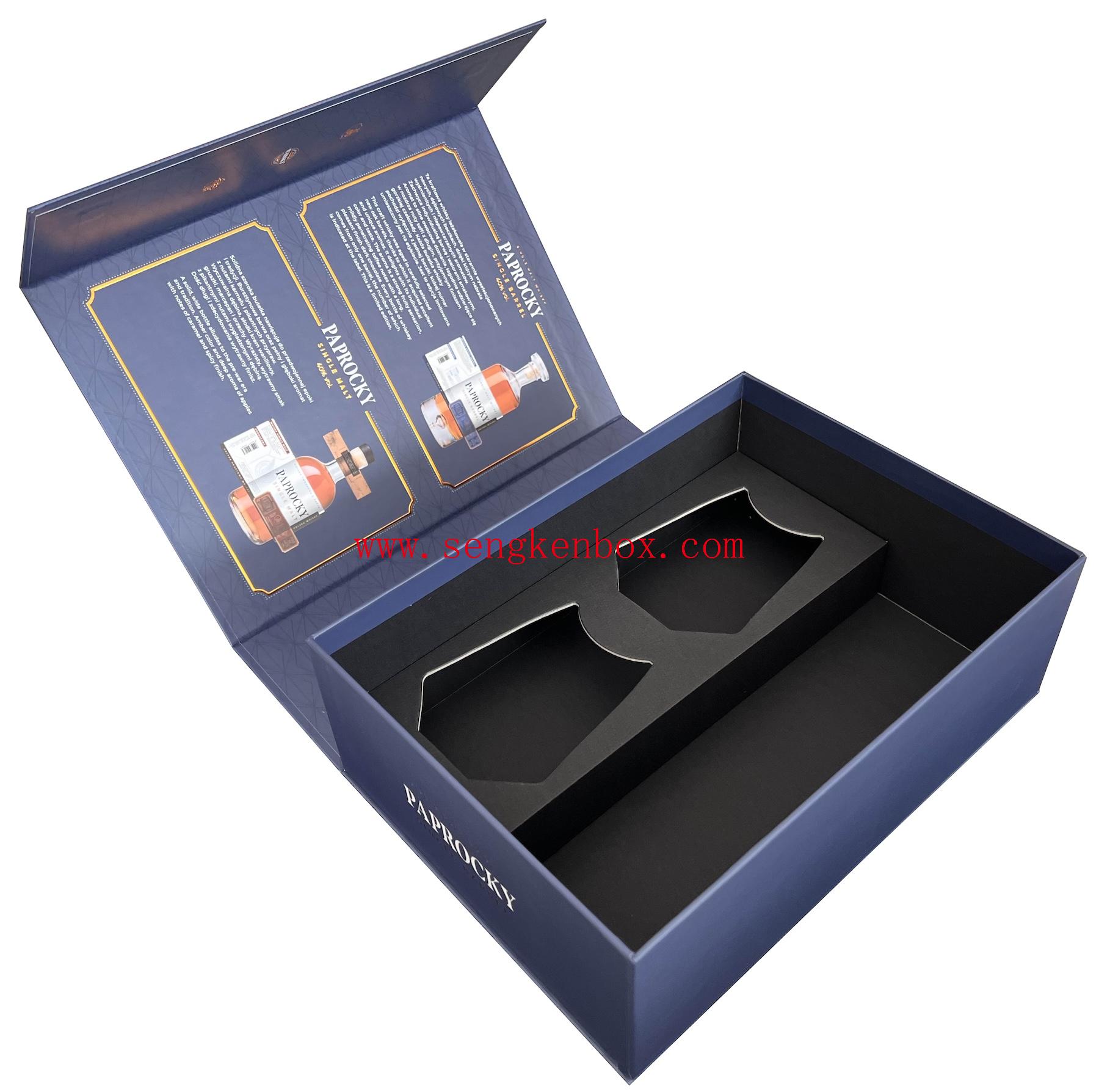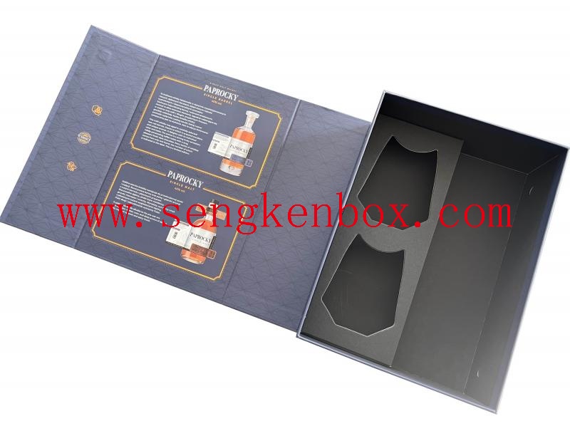 This Wine and Two Glasses Packaging Box is for packing Champagne and glasses,It is a luxury gift box.
