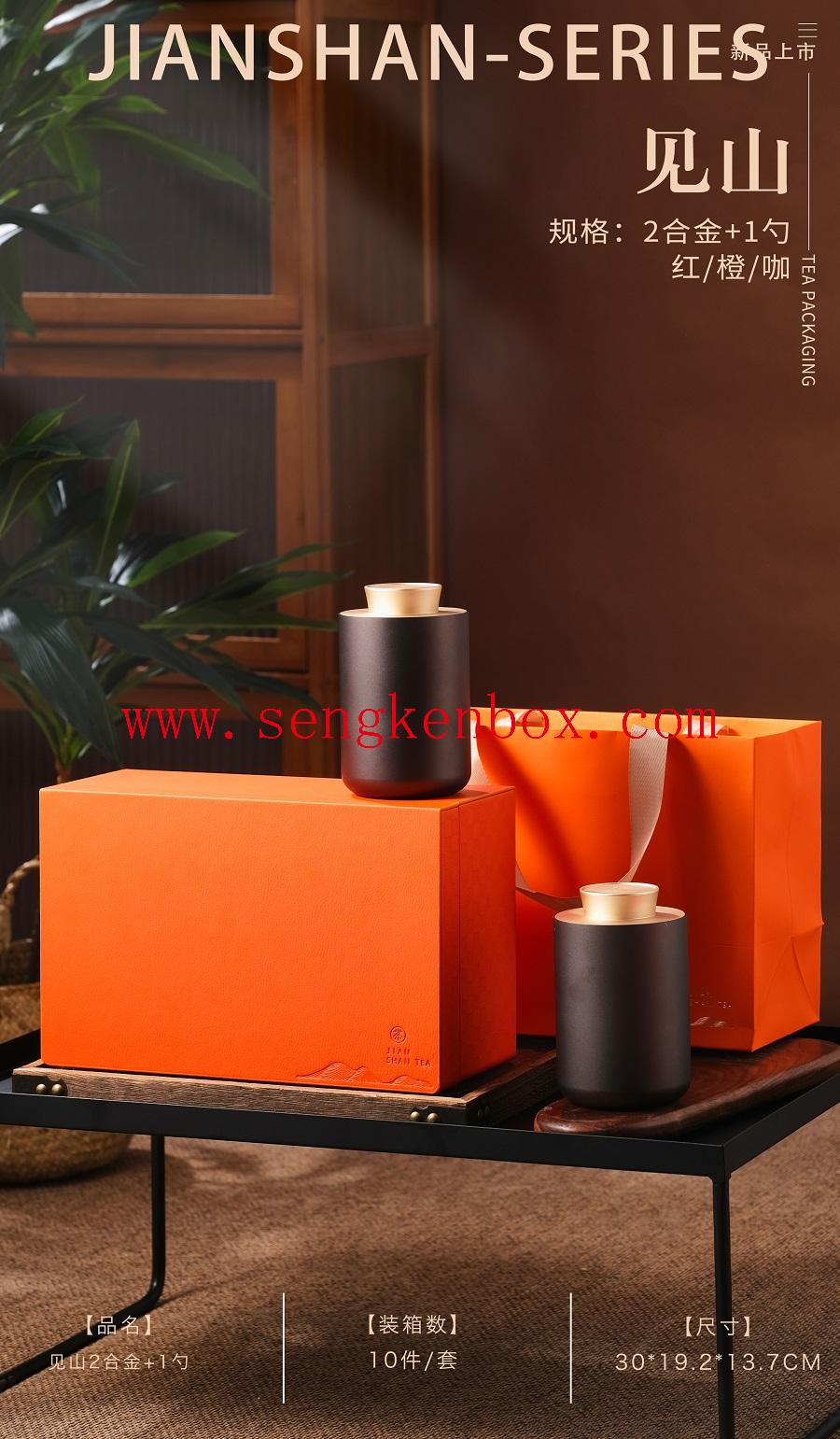 Tea Gift Packaging Leather Box with Alloy Jars and Cup Size is 345*215*150mm,size can be changed as per your request!