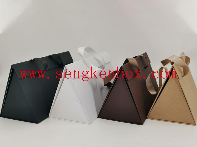 Material: 1) White Kraft Paper & Brown Kraft Paper; 2) Offset Paper; 3) Greaseproof Paper;4) Wax Paper;5) Foil Paper;6) Two layers paper or Lined Paper for the Customizable Foldable Triangle Paper Gift Box