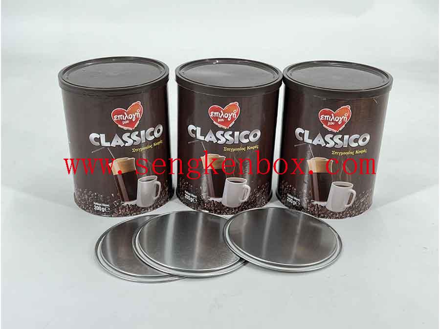 Printing: CMYK+Pantone Color ( As per customer's request) for Composite Flat Lid Aluminum Foil Liner Paper Packaging Hat Box For this Simple Coffee Packing Paper Cans