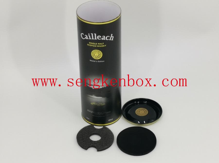 This Cylinder Box with Tinplate Lid is for packing Wine Whiskey,It is an eco-friendly packaging with black metal lid .