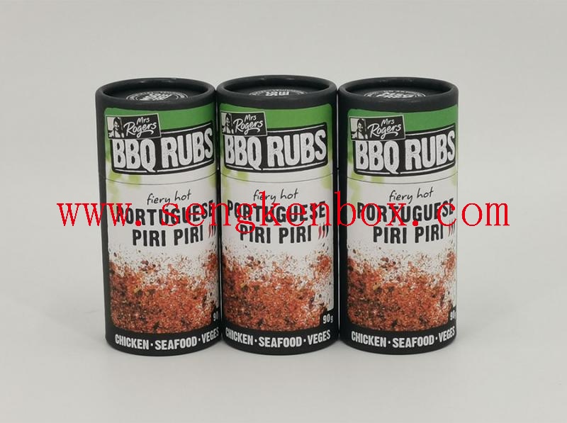 This Eco Friendly Custom Barbecue Seasoning Tube Paper Rounded is for packing Barbecue seasonings,It is a food grade composite paper canister with grease-proof aluminum foil liner.
