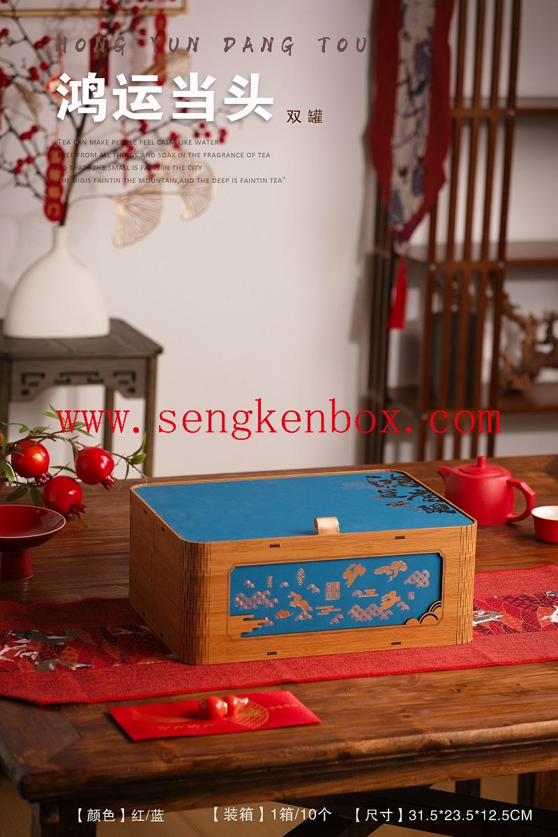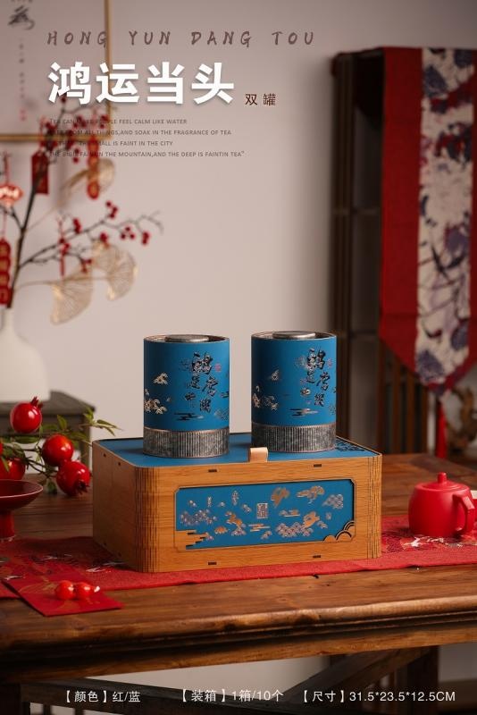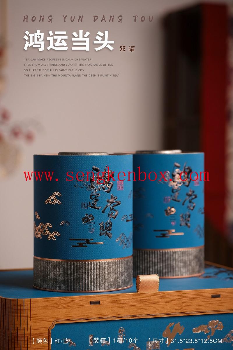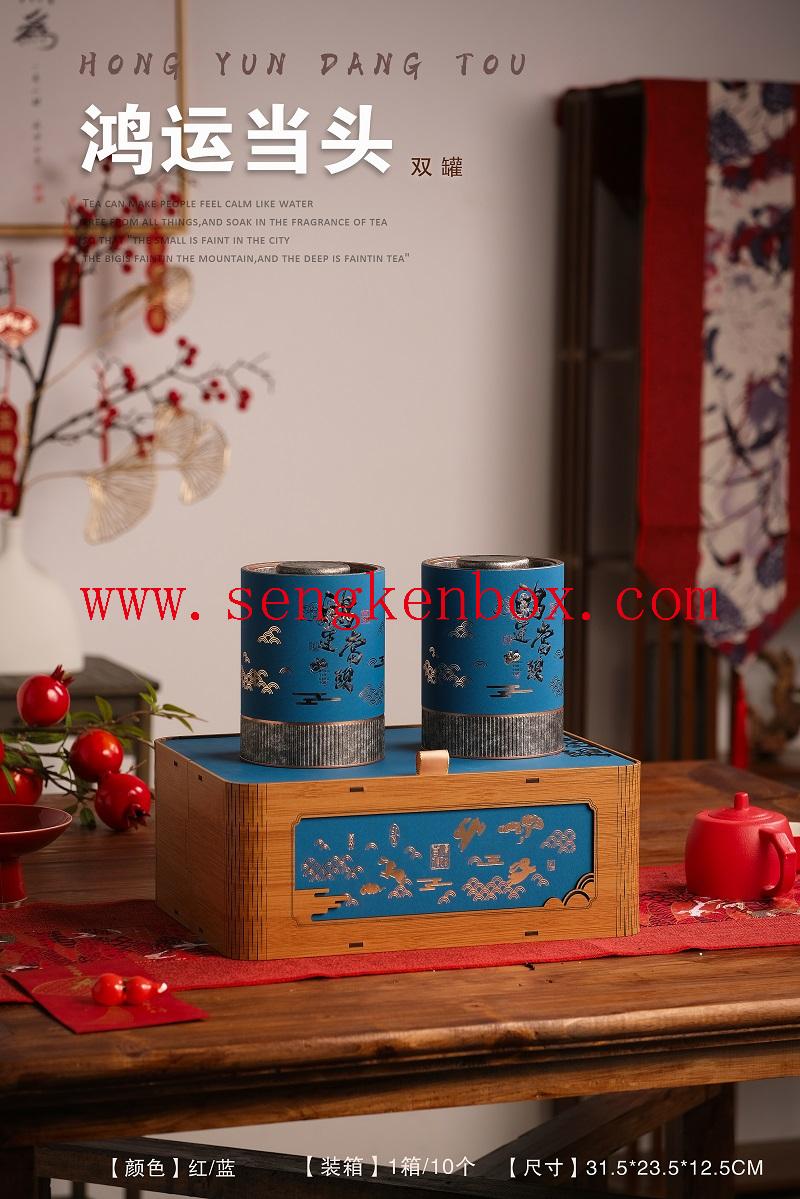 Exquisite Good Quality Tea Gift Box Chinese Tea Packaging with Two Sealed Storage Round Jars