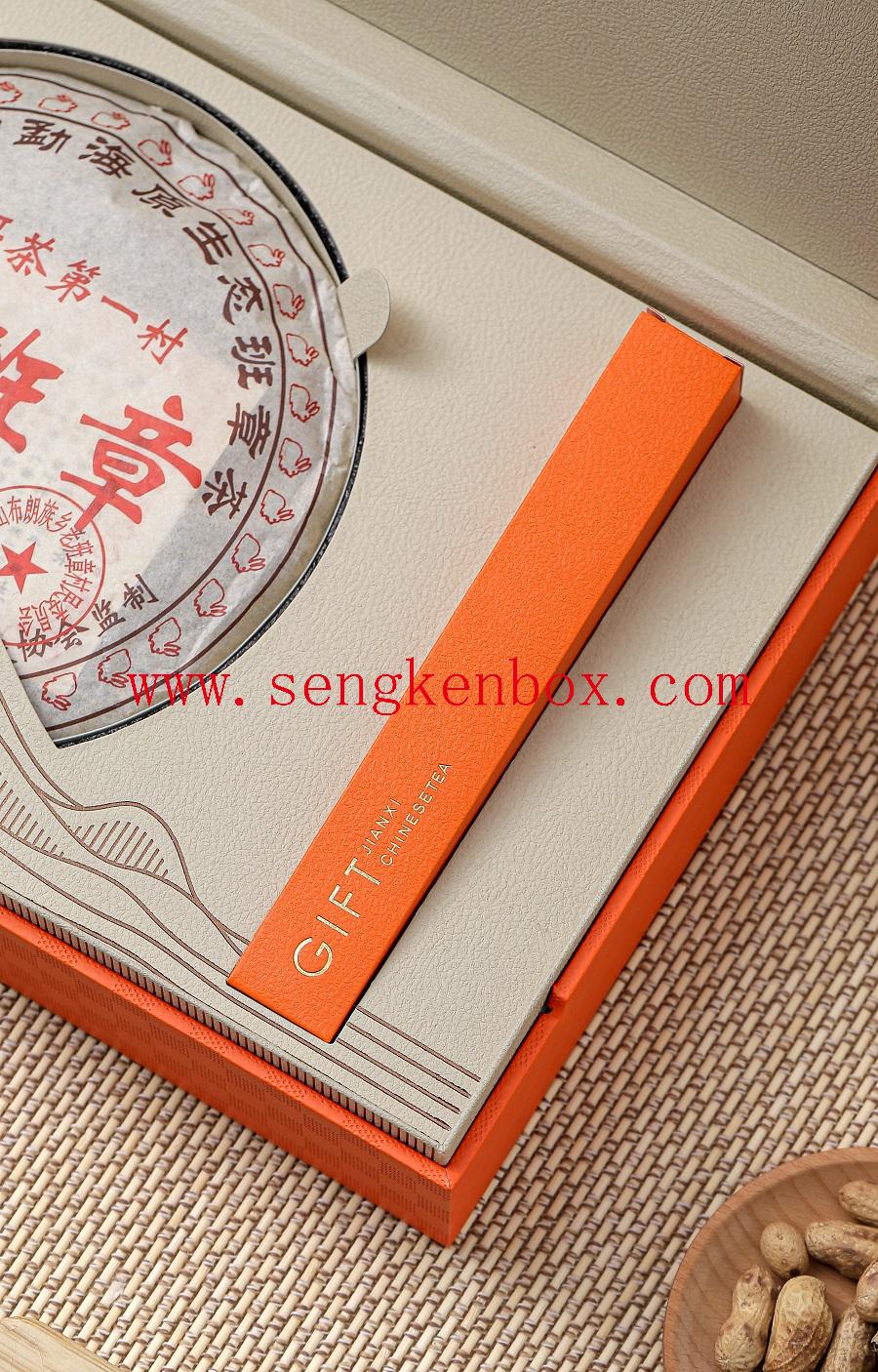 Tea Packaging Leather Gift Box with Three Tins Size is 345*215*150mm,size can be changed as per your request!