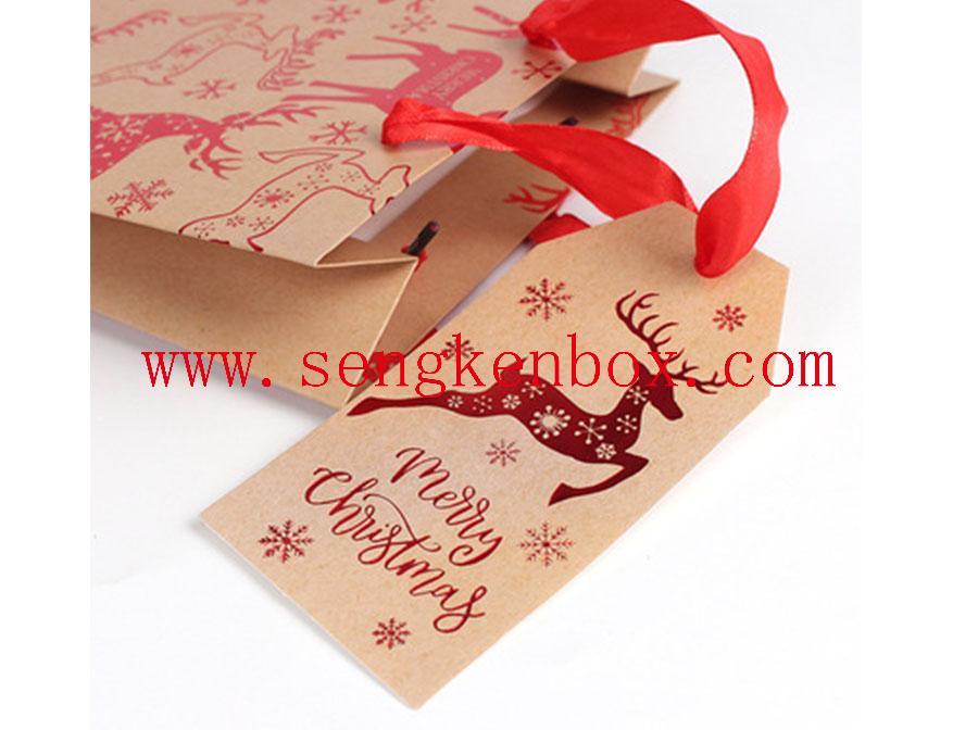 Material: 1) White Kraft Paper & Brown Kraft Paper; 2) Offset Paper; 3) Greaseproof Paper;4) Wax Paper;5) Foil Paper;6) Two layers paper or Lined Paper for the Festive Christmas Gift Paper Bag With Ribbon Handle