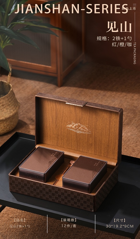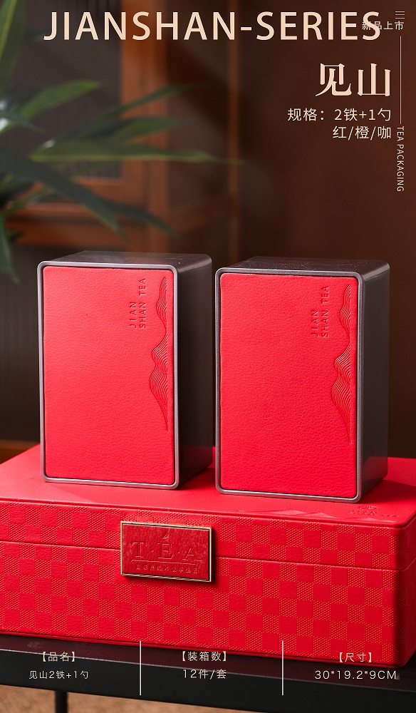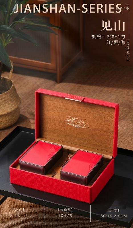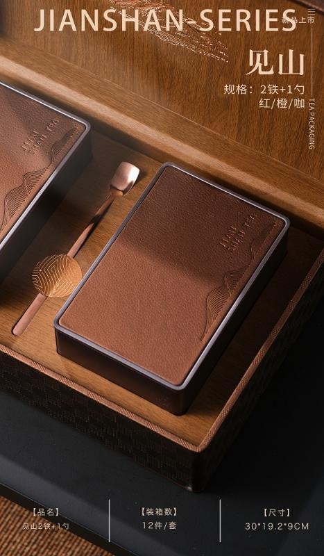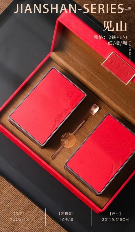 Good Grade Flip Shape Leather Gift Box with Present Bag and Metal Cans for Tea Packaging