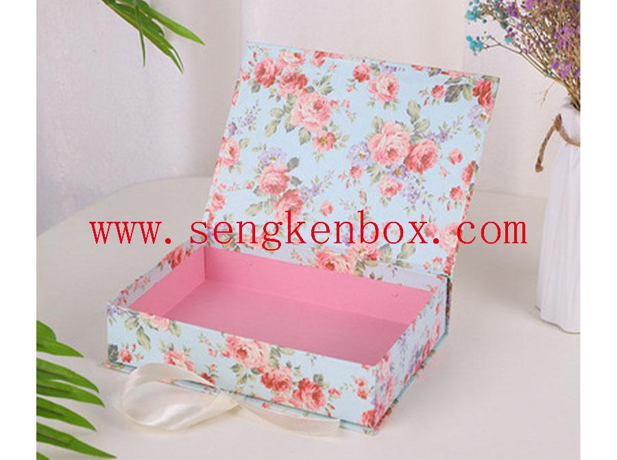 Depends on the quantityFloral Print Paper Non-Foldable Gift Box With Silk Hand-Held