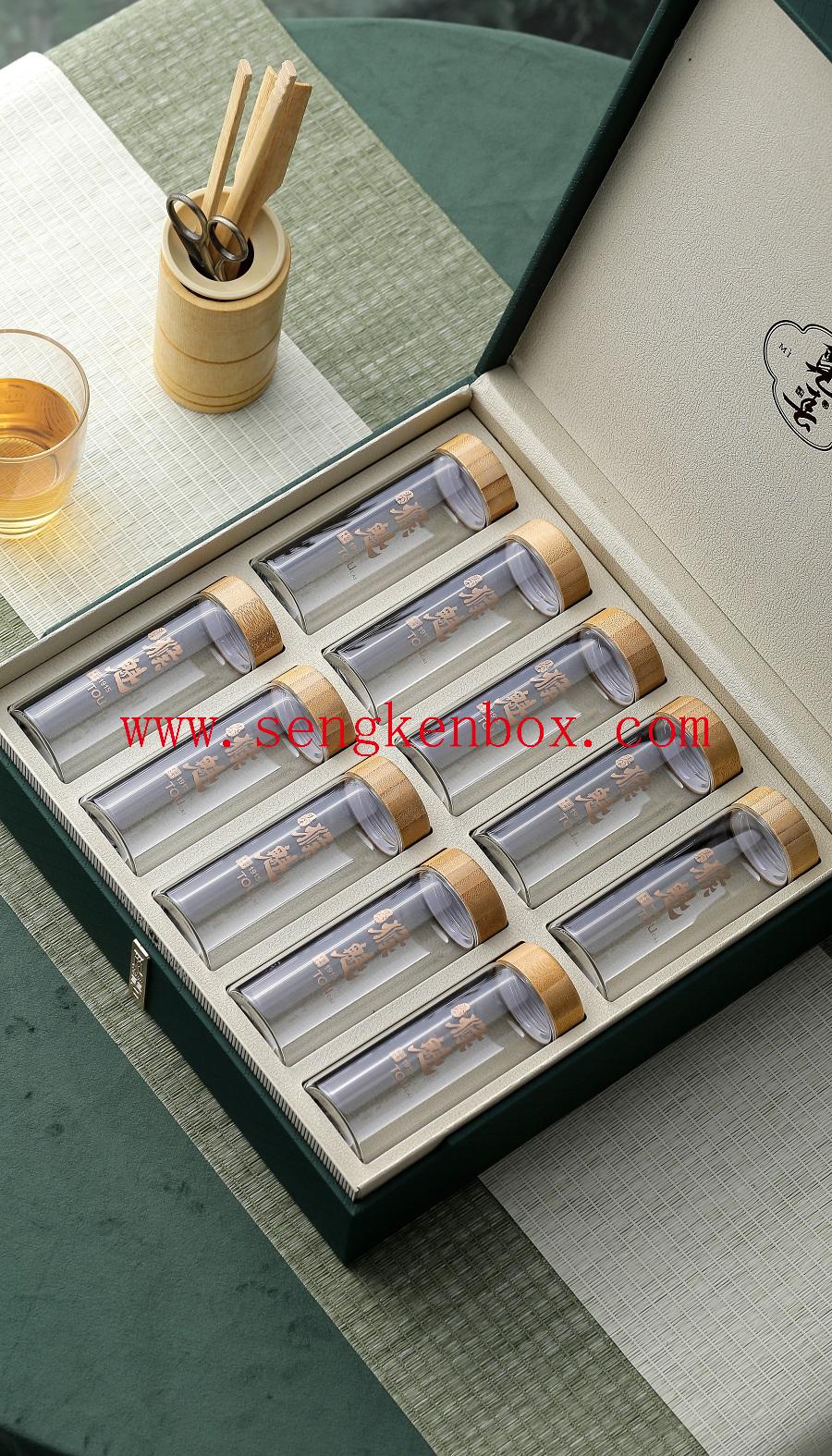 Tea Gift Packaging Leather Box with Four Metal Box Size is 345*215*150mm,size can be changed as per your request!