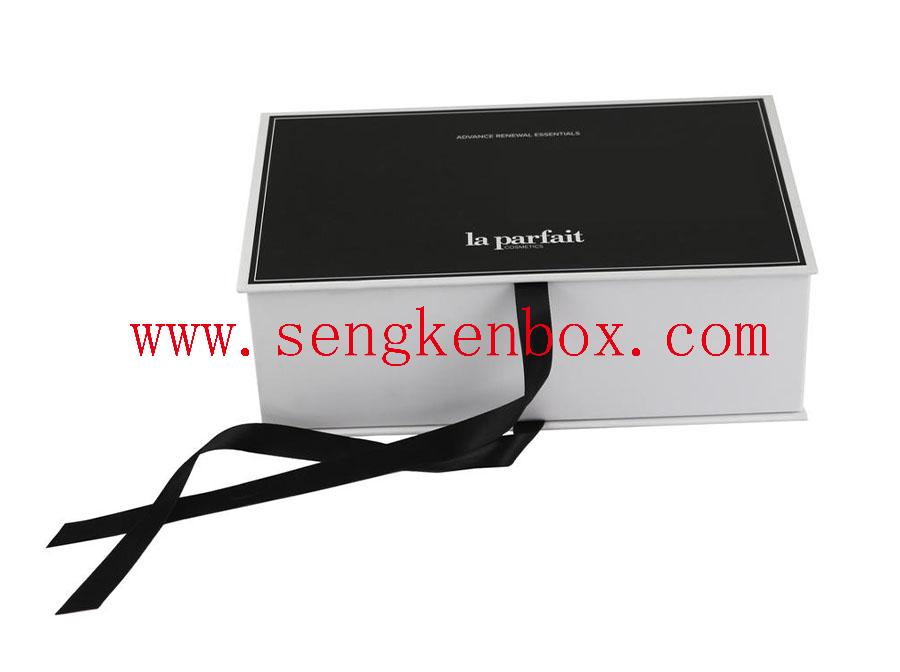 This Clamshell Cosmetic Paper Packaging Box With Ribbon is eco-friendly and recyclable.