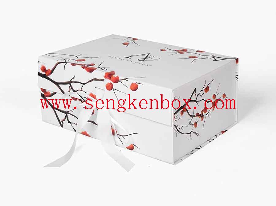 Printing: CMYK+Pantone Color ( As per customer's request) for this Folding Paper Box With Ribbon