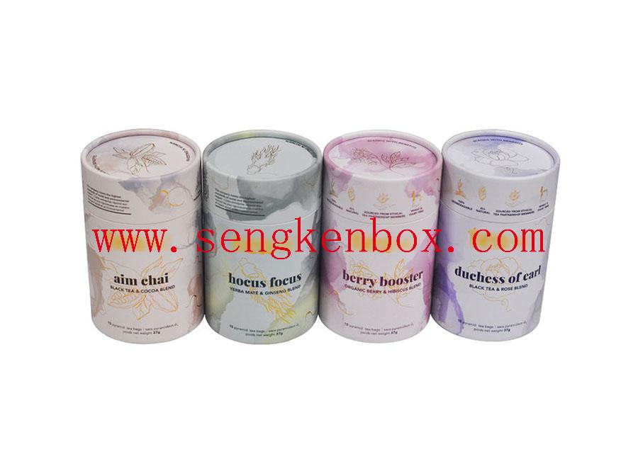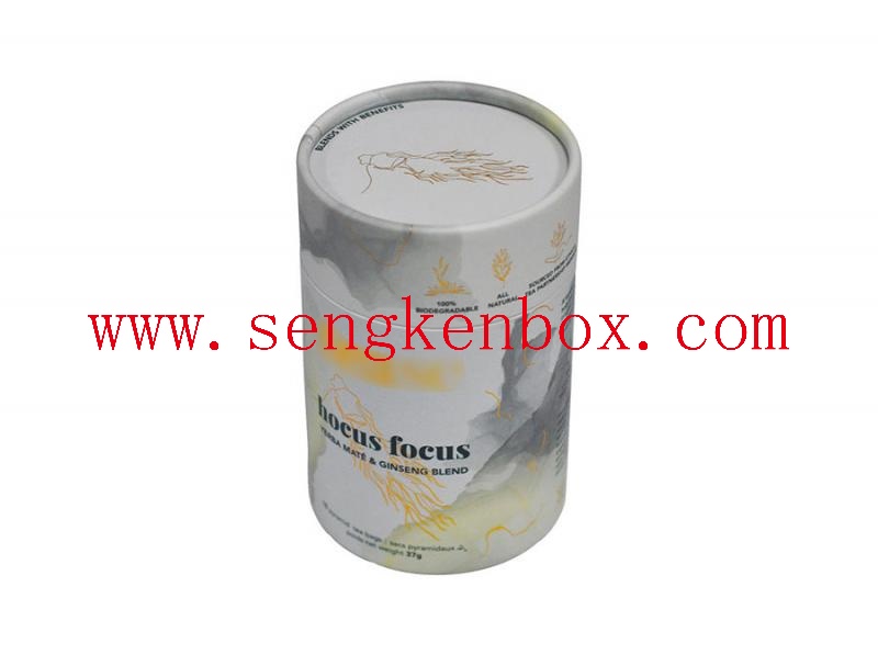 Material: Middle Kraft Paper Core+Inner Coated AL Foil Liner+Outside 157g White Kraft Paper with Printing logo+Glossy Varnishing+Metal Buckled Lid for the Recycled Material Custom Round Tube