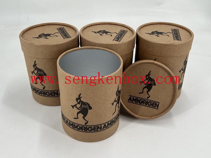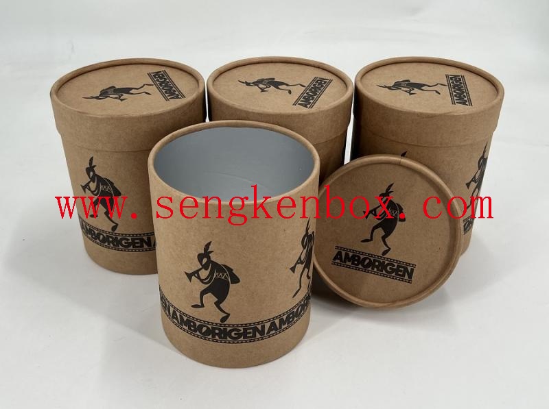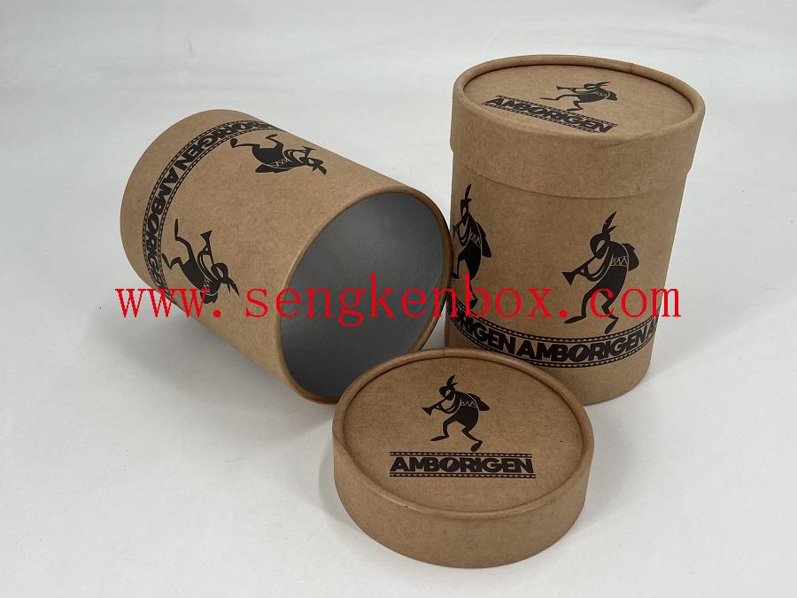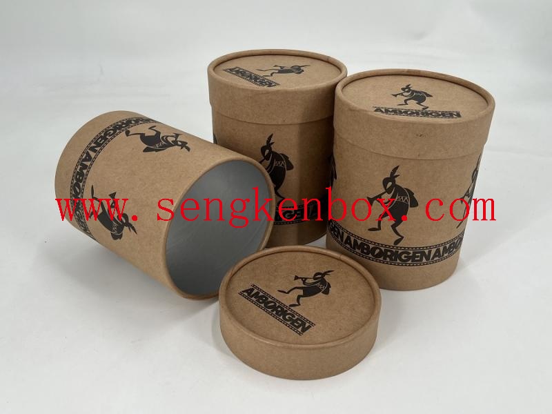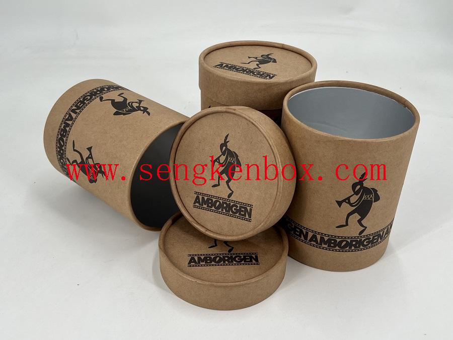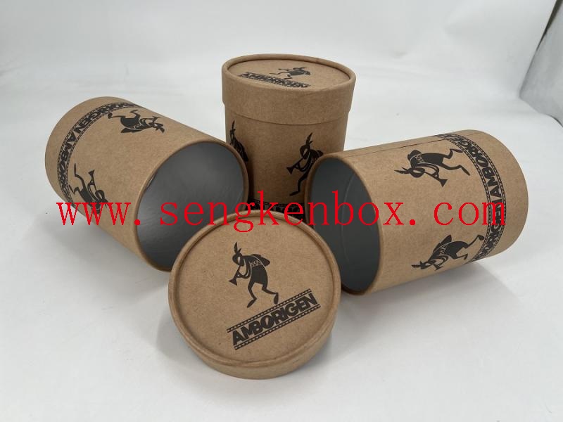 Material: Middle Kraft Paper Core+Inner Coated AL Foil Liner+Rigid Grey Cardboard+Outside 157g White Kraft Paper with Printing logo+Glossy Varnishing for the paper food grade canister