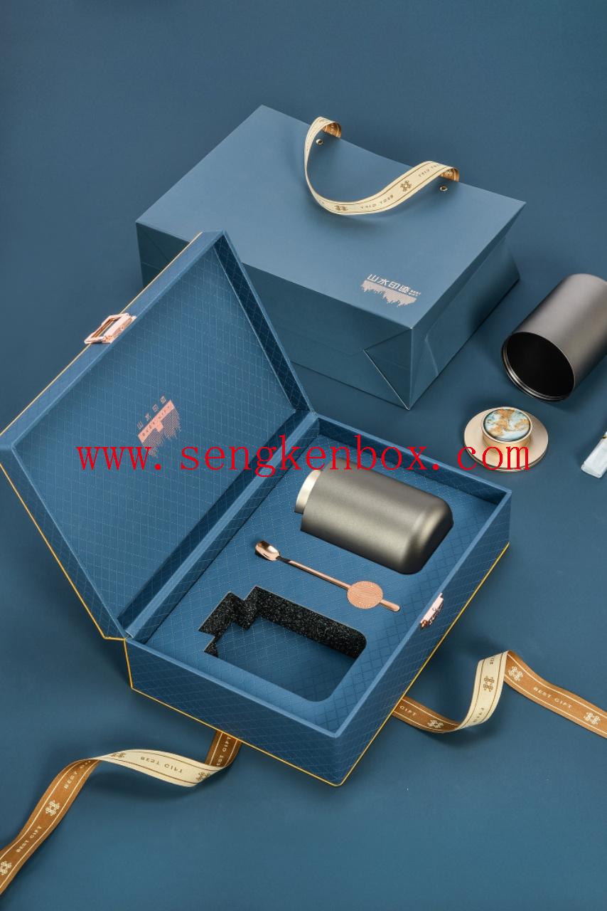 Luxury Leather Gift Tea Box with Sophisticated Handbag and Archaic Ceramic Tea Bottle for Present Packaging