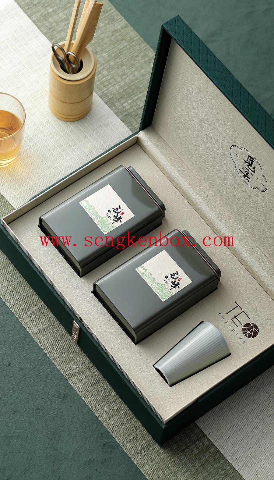 This is Luxury Leather Wooden Gift Box ,it is with Two Tin Cans and Ceramic Cup,rather suitable for tea or chocolate or gift packaging.