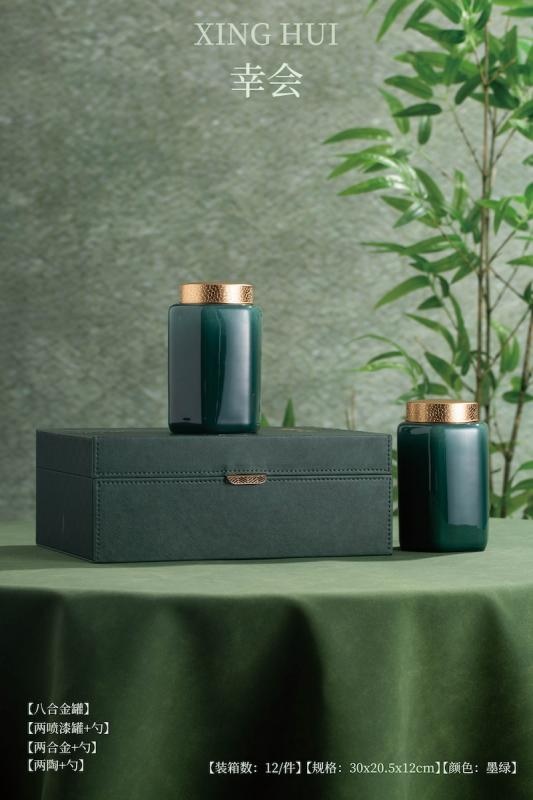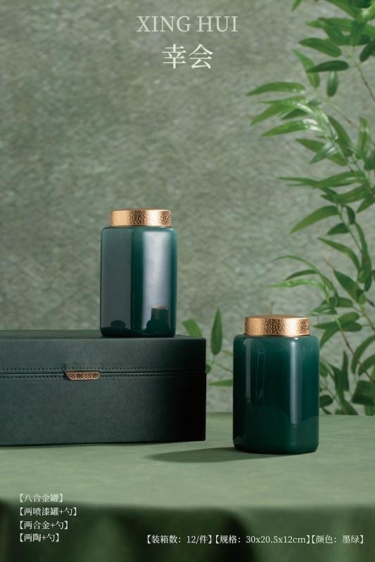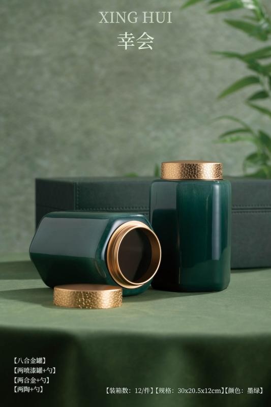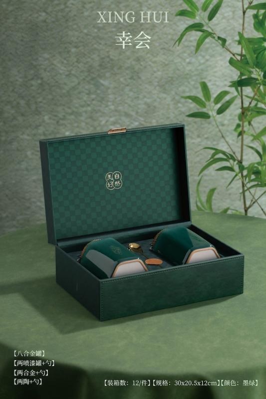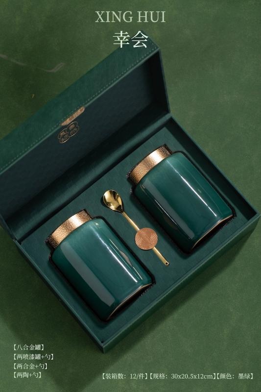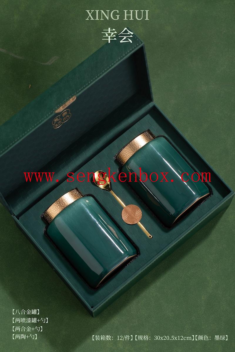 Lucky Meet Tea Packaging Set Two Clay Jars with Spoons