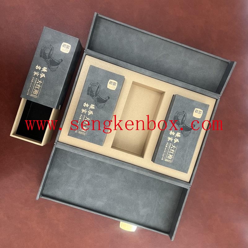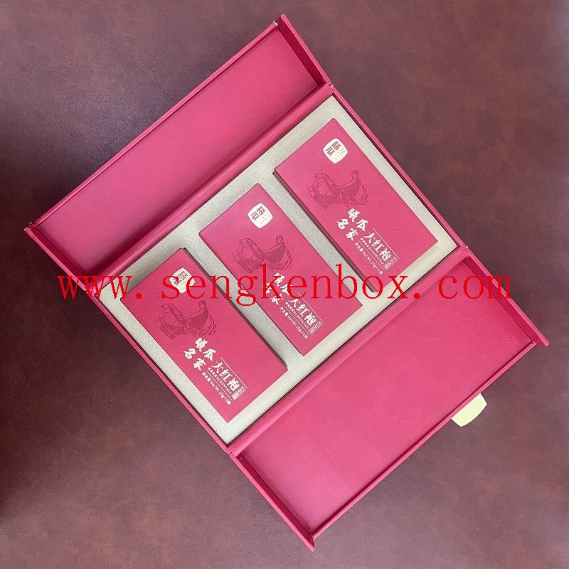 This premium double-door PU leather tea gift box is specially designed for high-grade Dahongpao rock tea, oolong tea and premium loose tea products.
