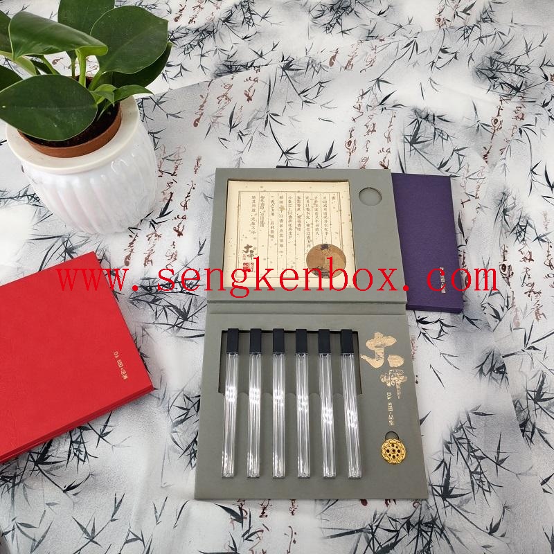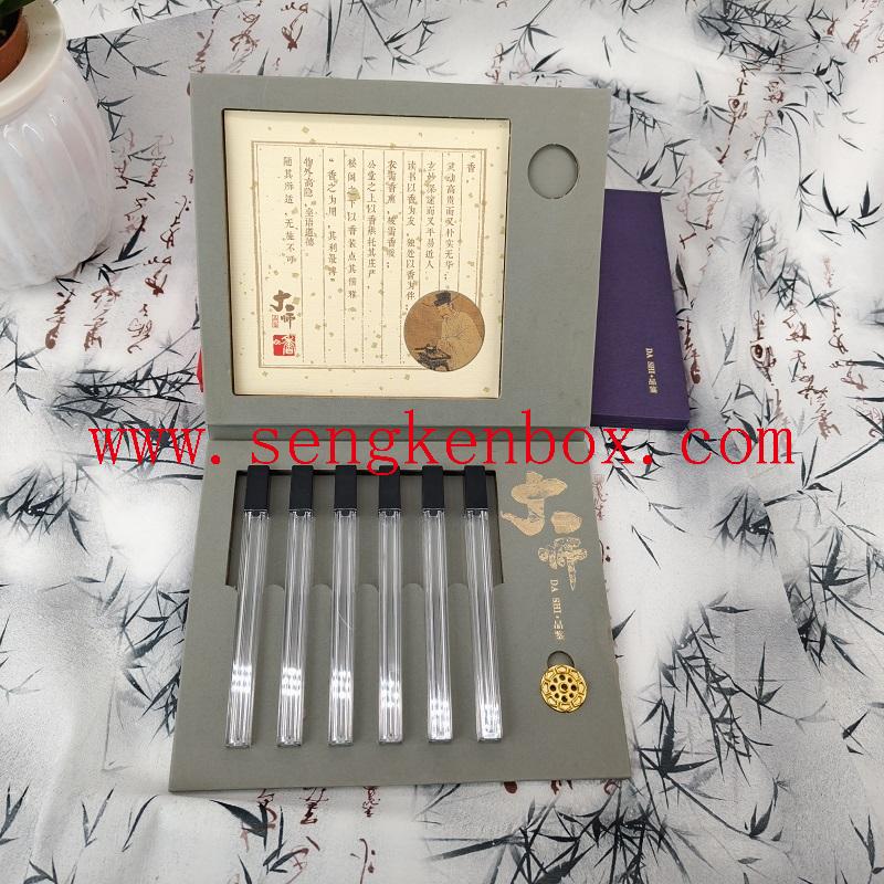 This master tasting six-tube incense stick gift box is made of high-end specialty paper, matched with transparent acrylictubes and sponge inner lining.