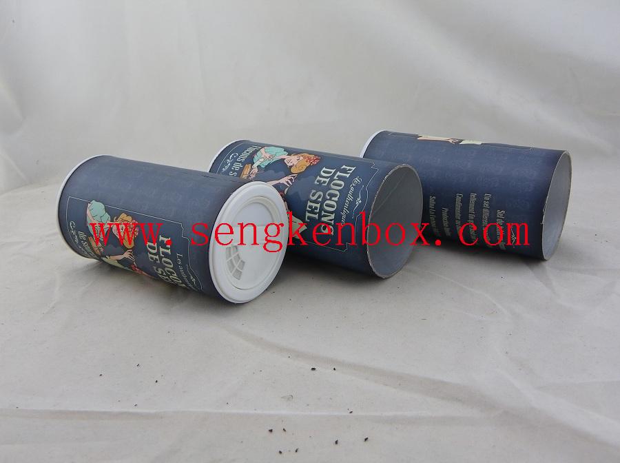 This Salt Packaging Sifter Paper Canister is composite food grade with moisture-proof aluminum foil liner.