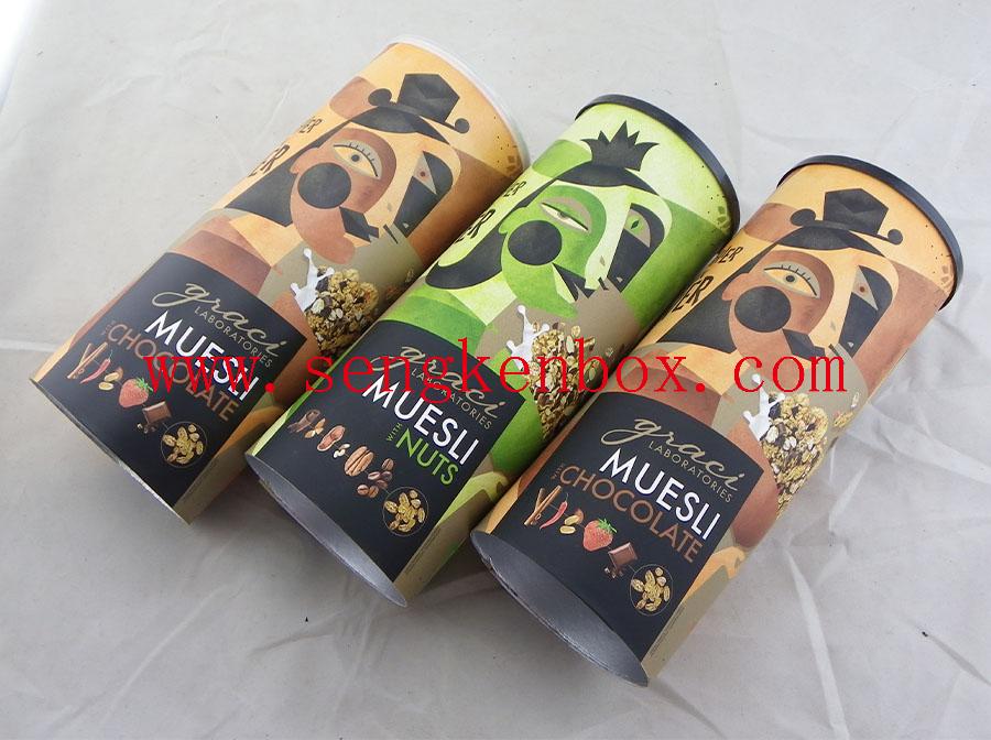 This Muesli Nut Food Packaging Paper Cans is for packing seeds,It is a composite food grade canister with moisture-proof aluminum foil liner.
