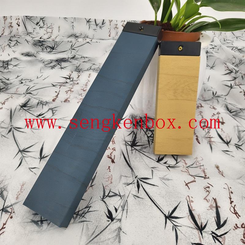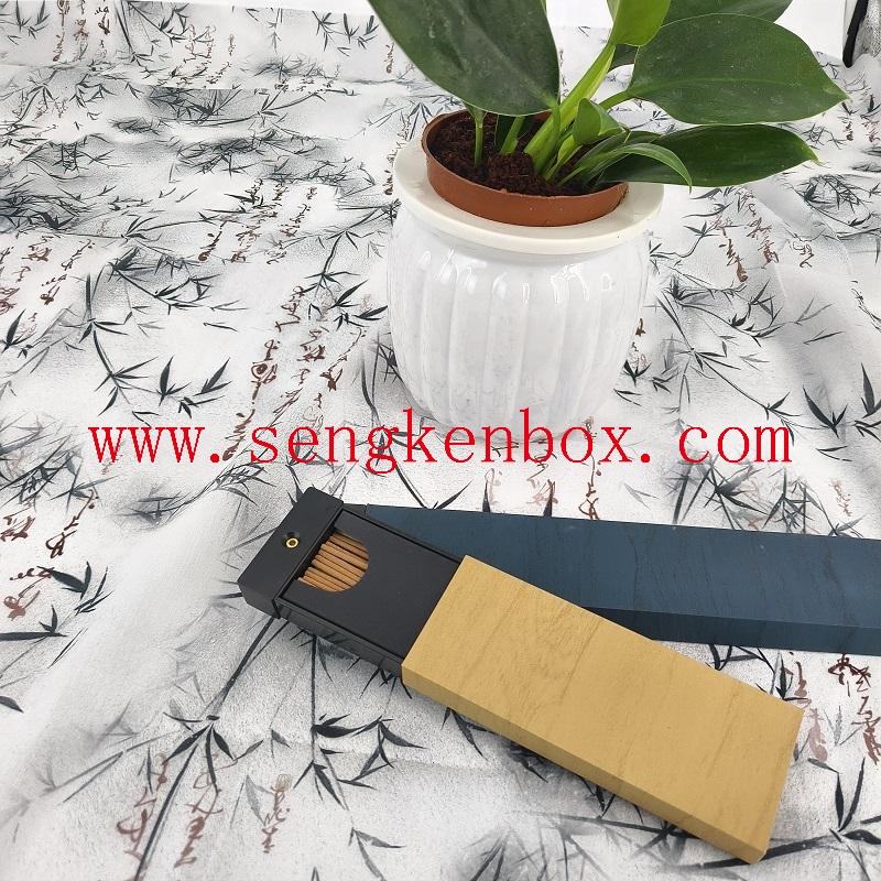 This new Chinese style solid wood incense tube gif box is made of high-quality solid wood and metal hardware splicing,with a blue-gold contrast color design that highlights a sense of zen and light luxury. The push-pull structure has bothincense tube storage and incense holder functions, and can be customized with logos and carved patterns, suitable for tearoom,study decoration, business gifting and other scenarios. Solid wood splicing and baking paint technology upgradethe product texture, supporting multiple transportation methods to add a high-end packaging experience to your incenseceremony products.