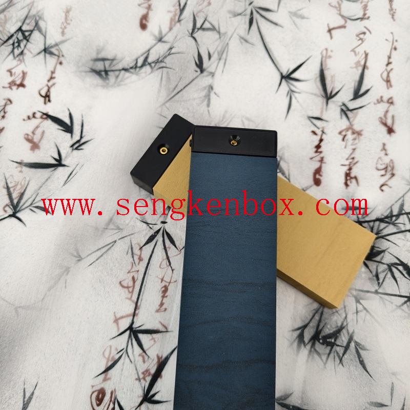 This new Chinese style solid wood incense tube gif box is made of high-quality solid wood and metal hardware splicing,with a blue-gold contrast color design that highlights a sense of zen and light luxury.