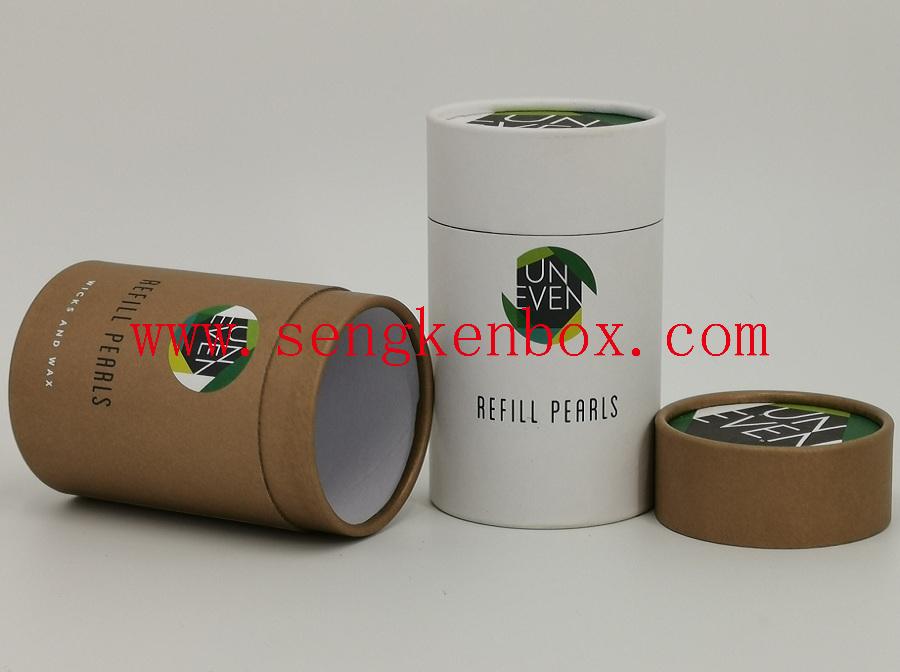 Material: Middle Kraft Paper Core+Inner Coated AL Foil Liner+Rigid Grey Cardboard+Outside 157g White Kraft Paper with Printing logo+Glossy Varnishing for the Paraffin Wax Packaging Paper Tube Candle Packing Round Cardboard Box