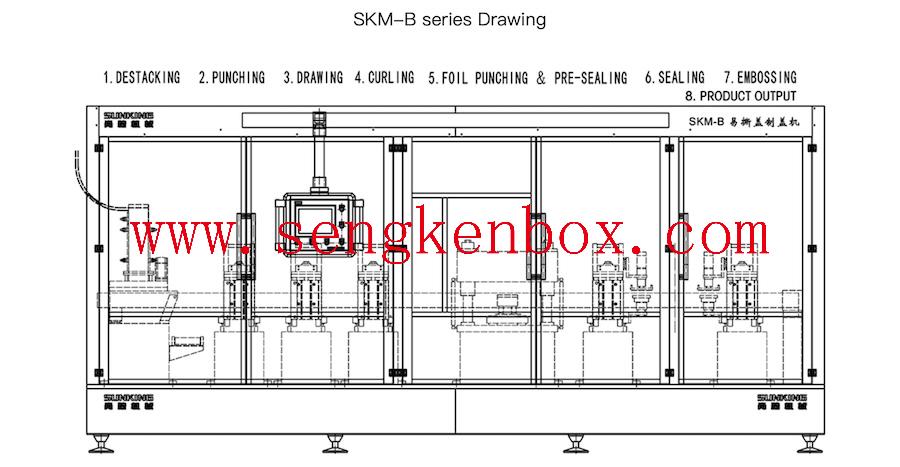 7500This series machine can be used to manufacture 202-603# POE,and specially suitable for bigger 307-603# POE. It is automatically complete the functions of shell feeding, punching, deep drawing, crimping, aluminum foil pre-sealing, sealing, embossing and output etc. Independent servo controls each function module, adjusts parameters separately, and achieves high speed response and synchronous movement. Inclined punching arrangement makes the aluminum foil waste least. We can make any new model according to clients’ requirement. All the informations for reference only,The products are subject to change without notice.