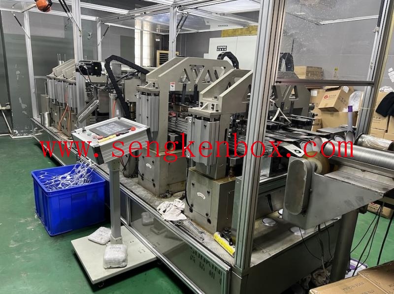 It is a special equipment used for bonding new retort aluminum foil easy-to-tear lids. The machine automatically completes loop placement, punching, pre-bending, curling, preheating, punching aluminum foil positioning, heat sealing, handle alignment/dispensing/folding , cooling, flattening or embossing, output and other actions. Each piece of equipment adopts a servo modular design, a synchronous belt-driven handling method, and is equipped with 2 channels.