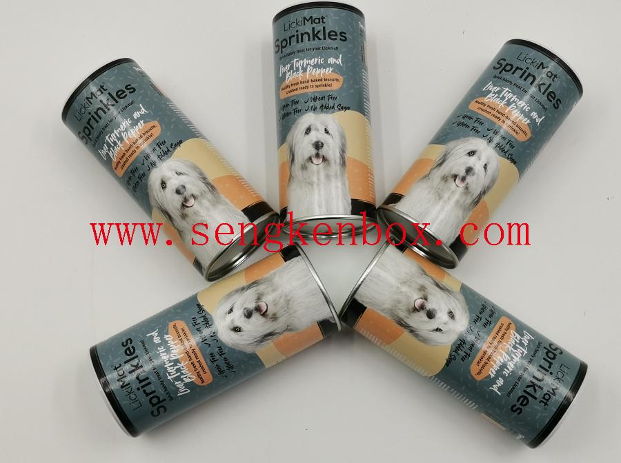This Shaker Paper Canister is for packing Pets Biscuit Food,It is a composite food grade paper canister with grease-proof aluminum foil liner.