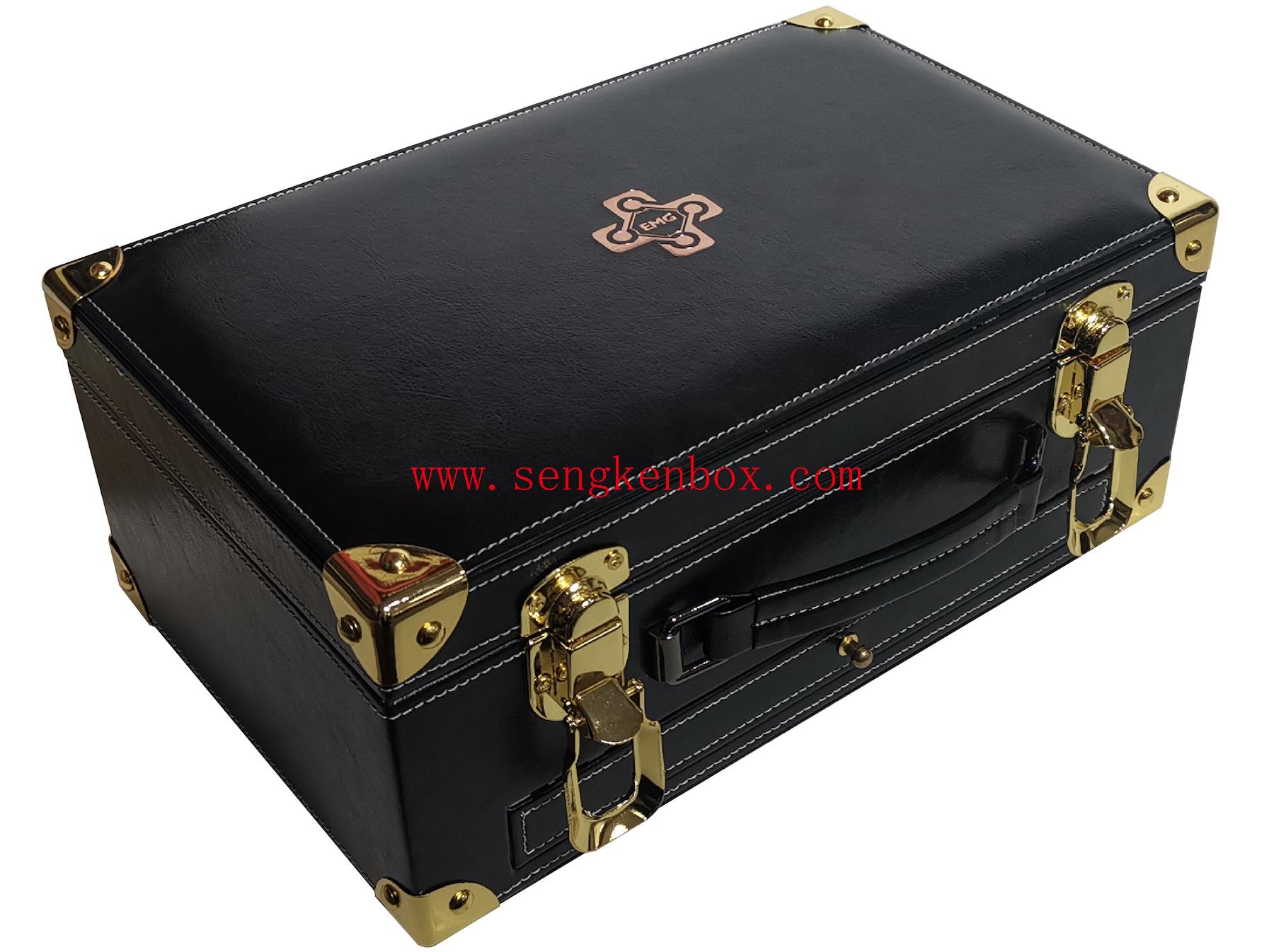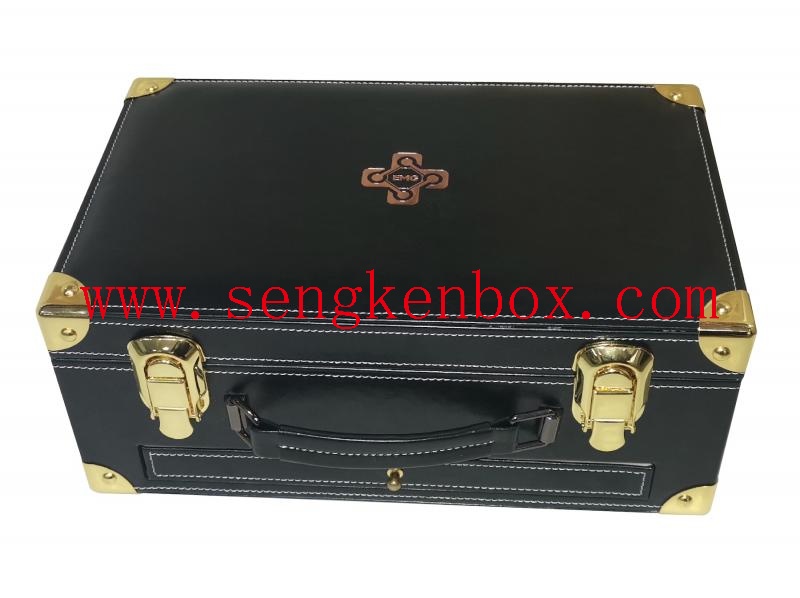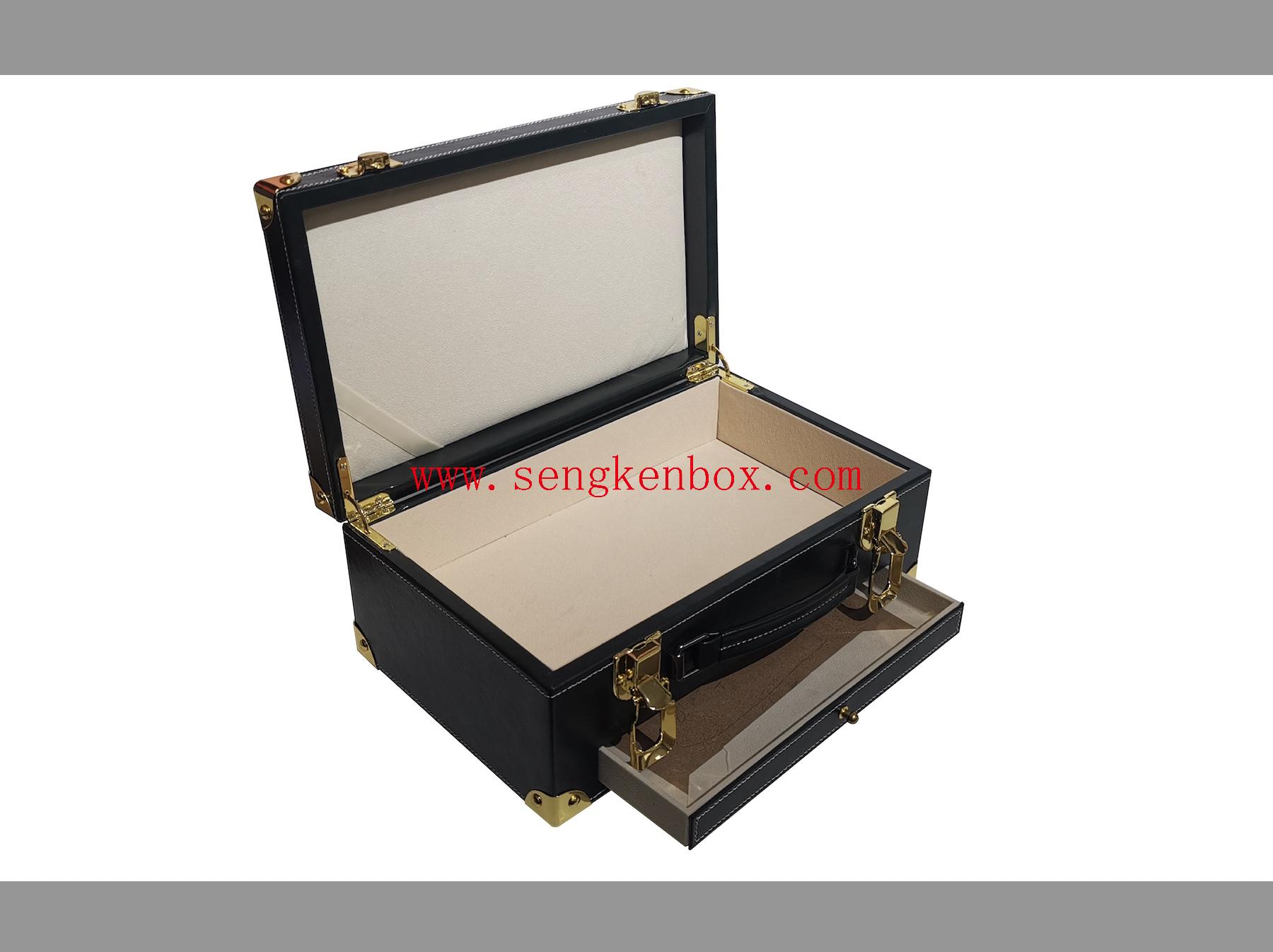This Double Locks Leather Packaging Gift Box is portable with handle and sliding drawer ,It is a luxury gift box.