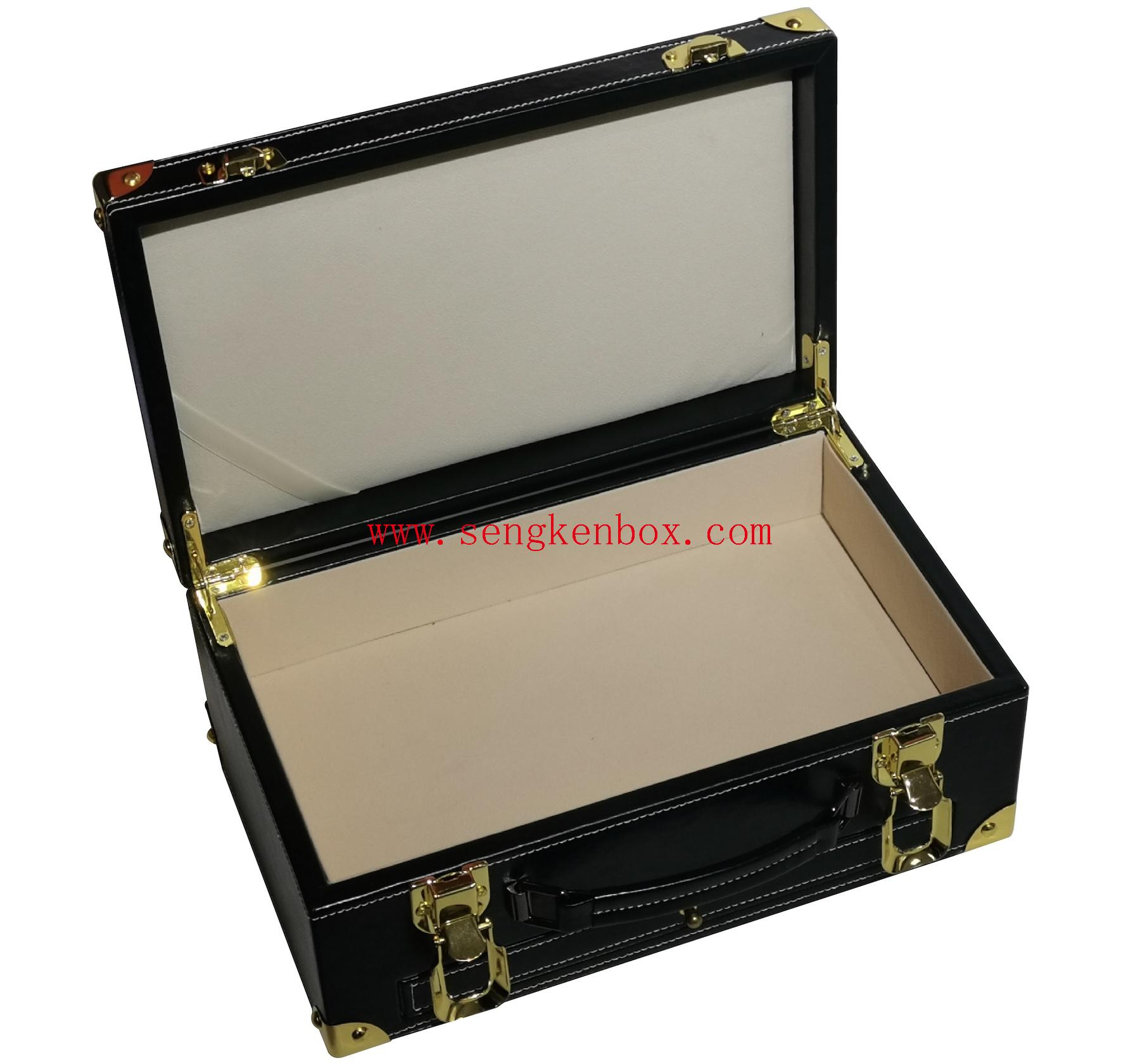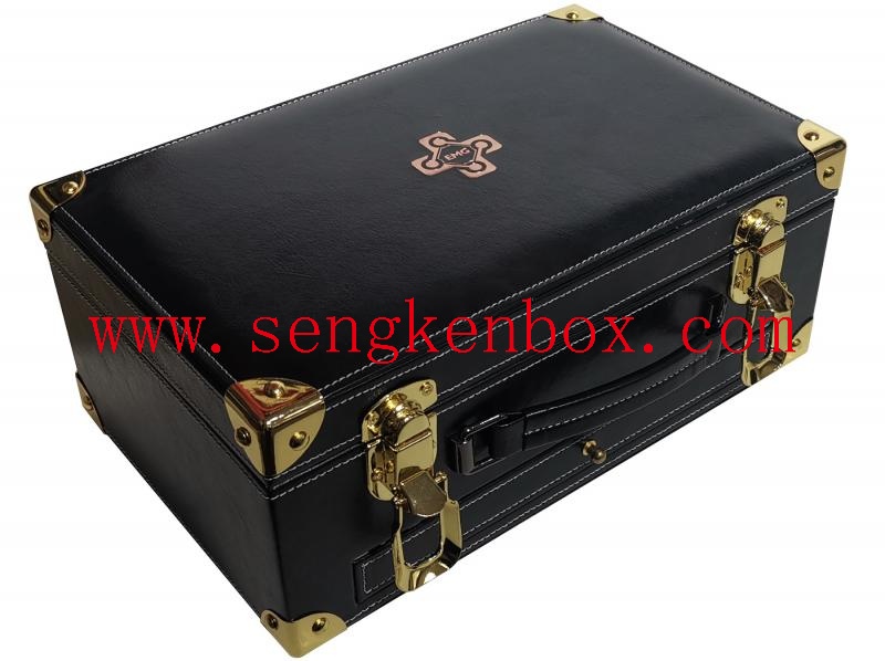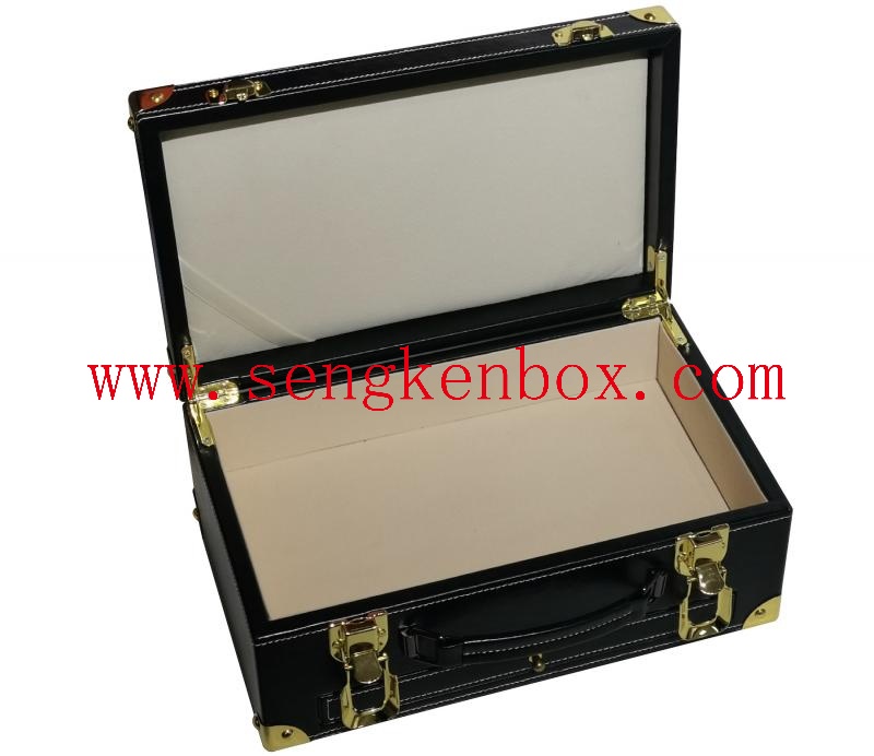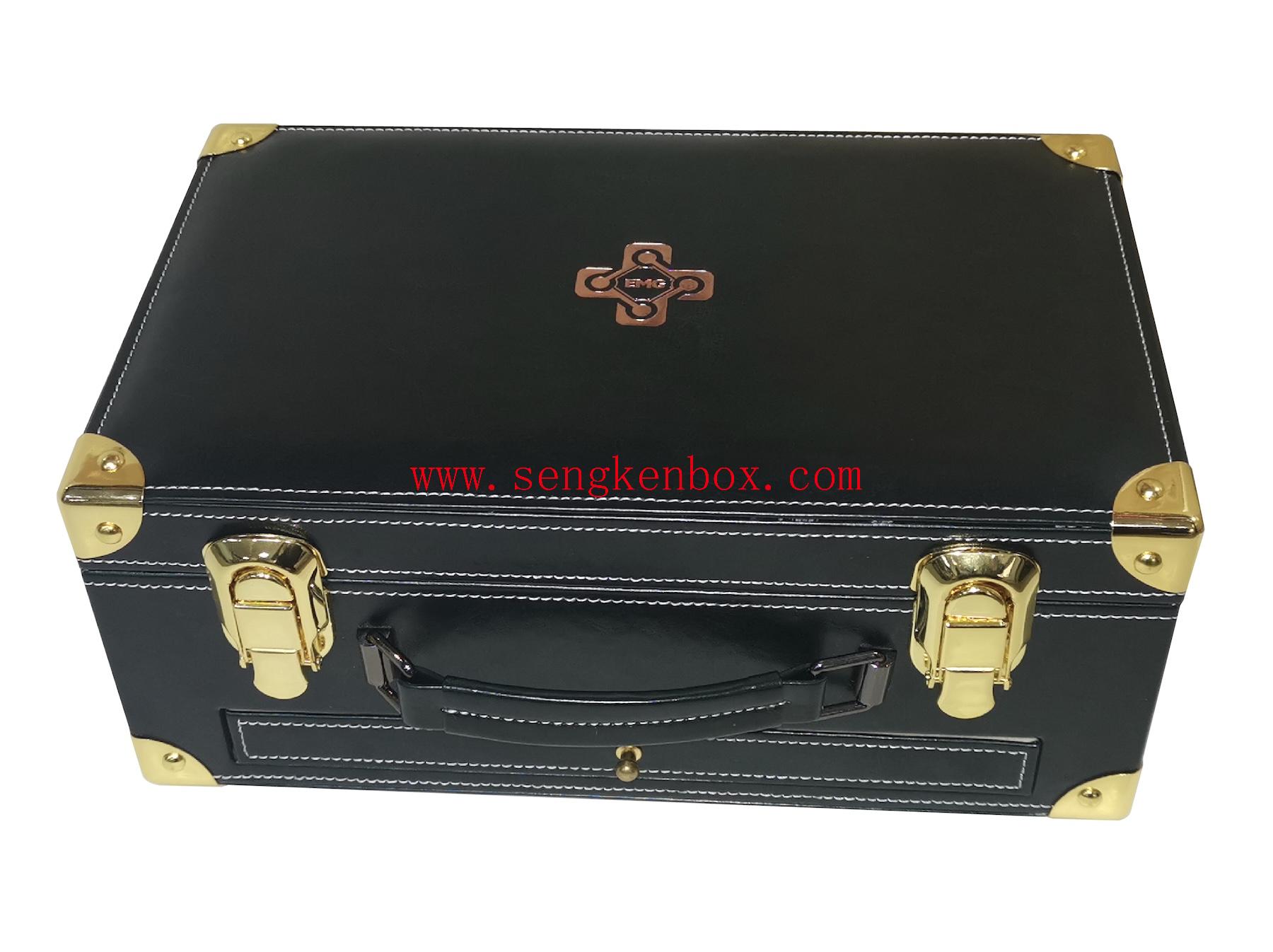 This Double Locks Leather Packaging Gift Box is portable with handle and sliding drawer ,It is a luxury gift box.