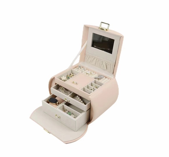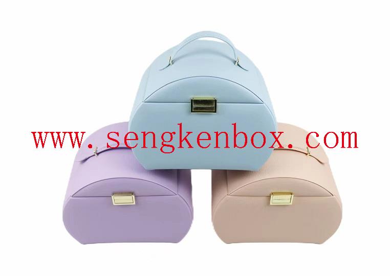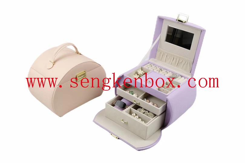 Wholesale Custom Pu Leather Portable Jewelry Case with Handle for Rings Necklaces Storage Jewelry Box