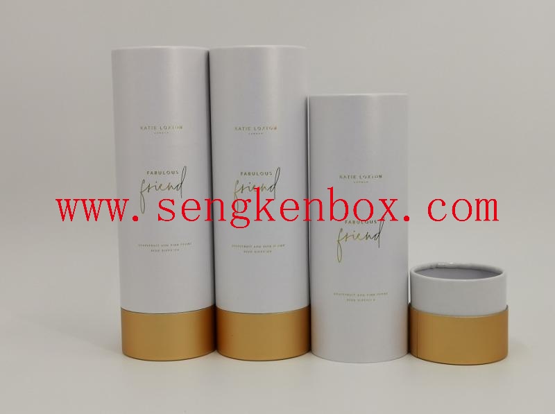 Material: Middle Kraft Paper Core+Inner Coated AL Foil Liner+Rigid Grey Cardboard+Outside 157g White Kraft Paper with Printing logo+Glossy Varnishing for the Rolled Edge Long Lid Perfume Packaging Paper Cardboard Tube Box