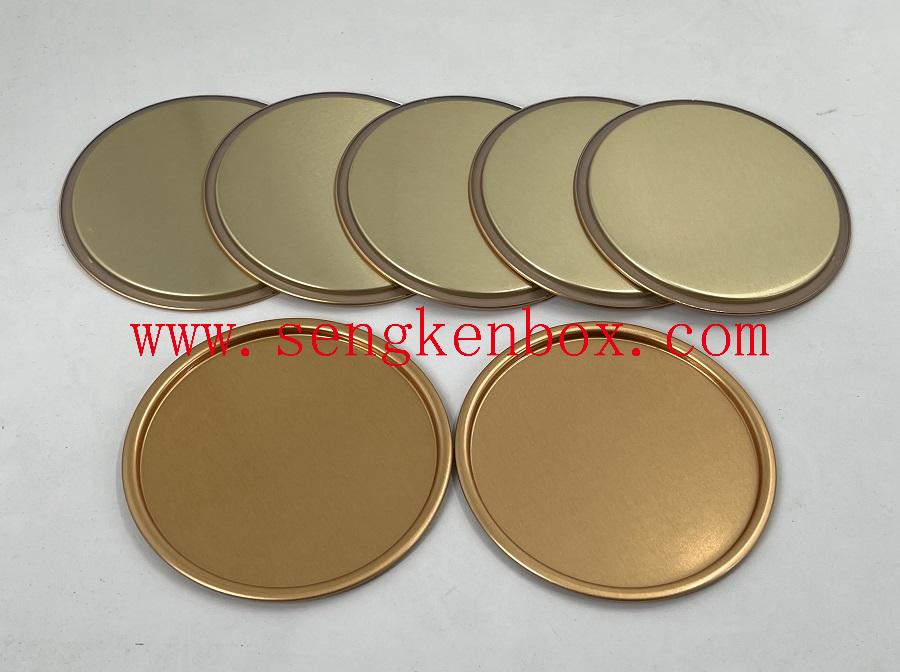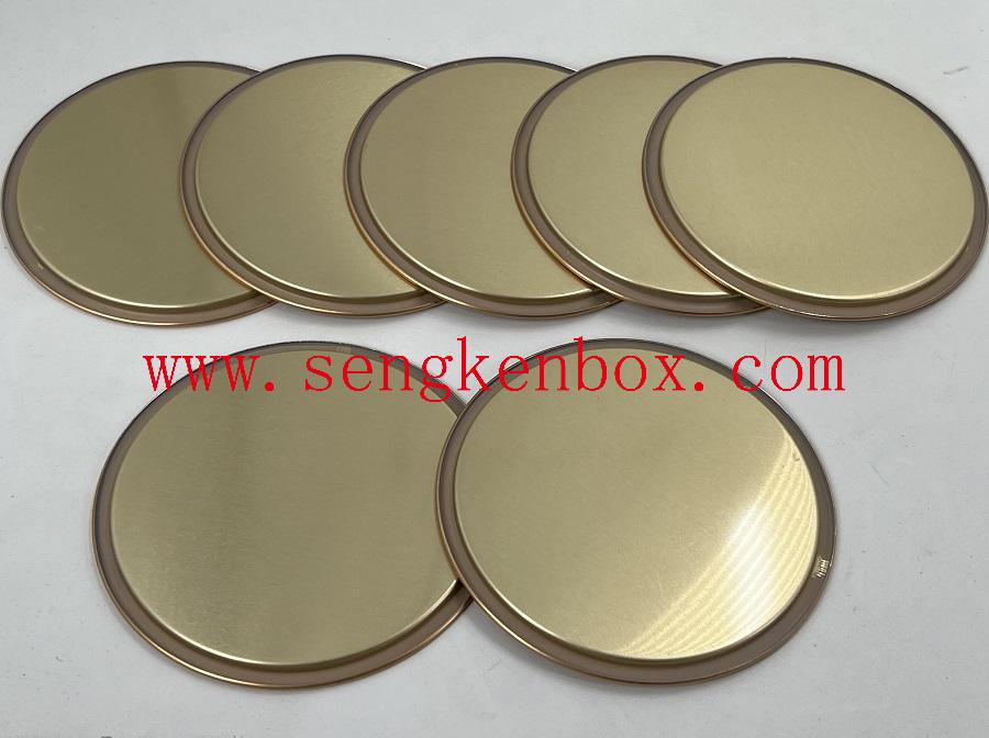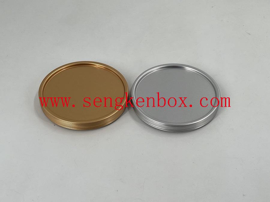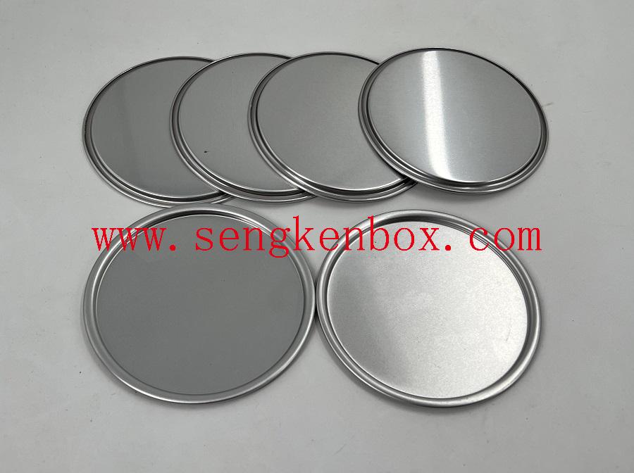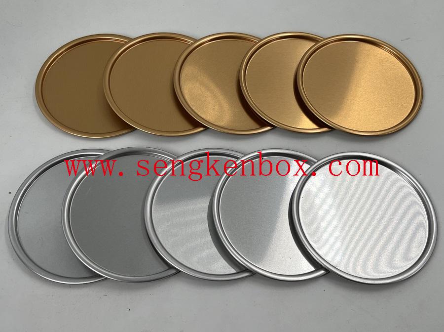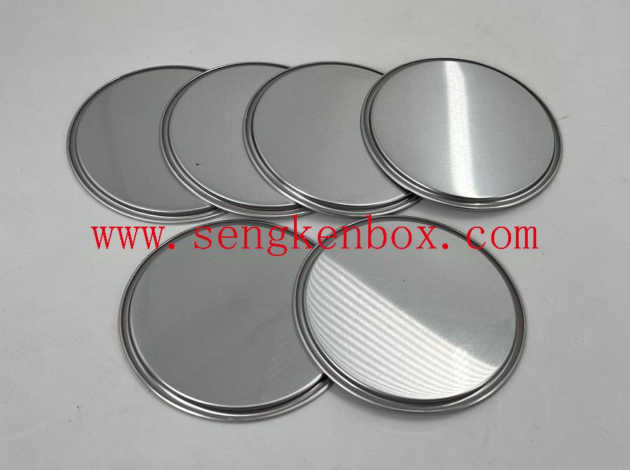 This is Round Flat Aluminum Caps, It is food grade and with grue for sealing round cans,they are used on composite paper tubes/cans/metal cans/aluminum cans etc.