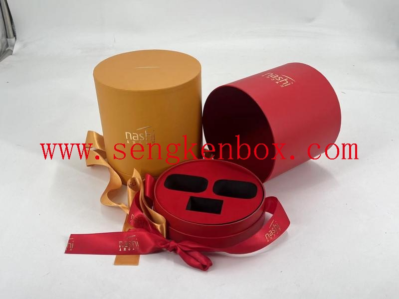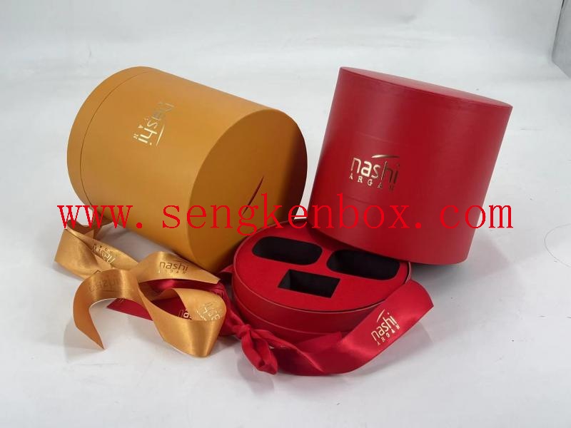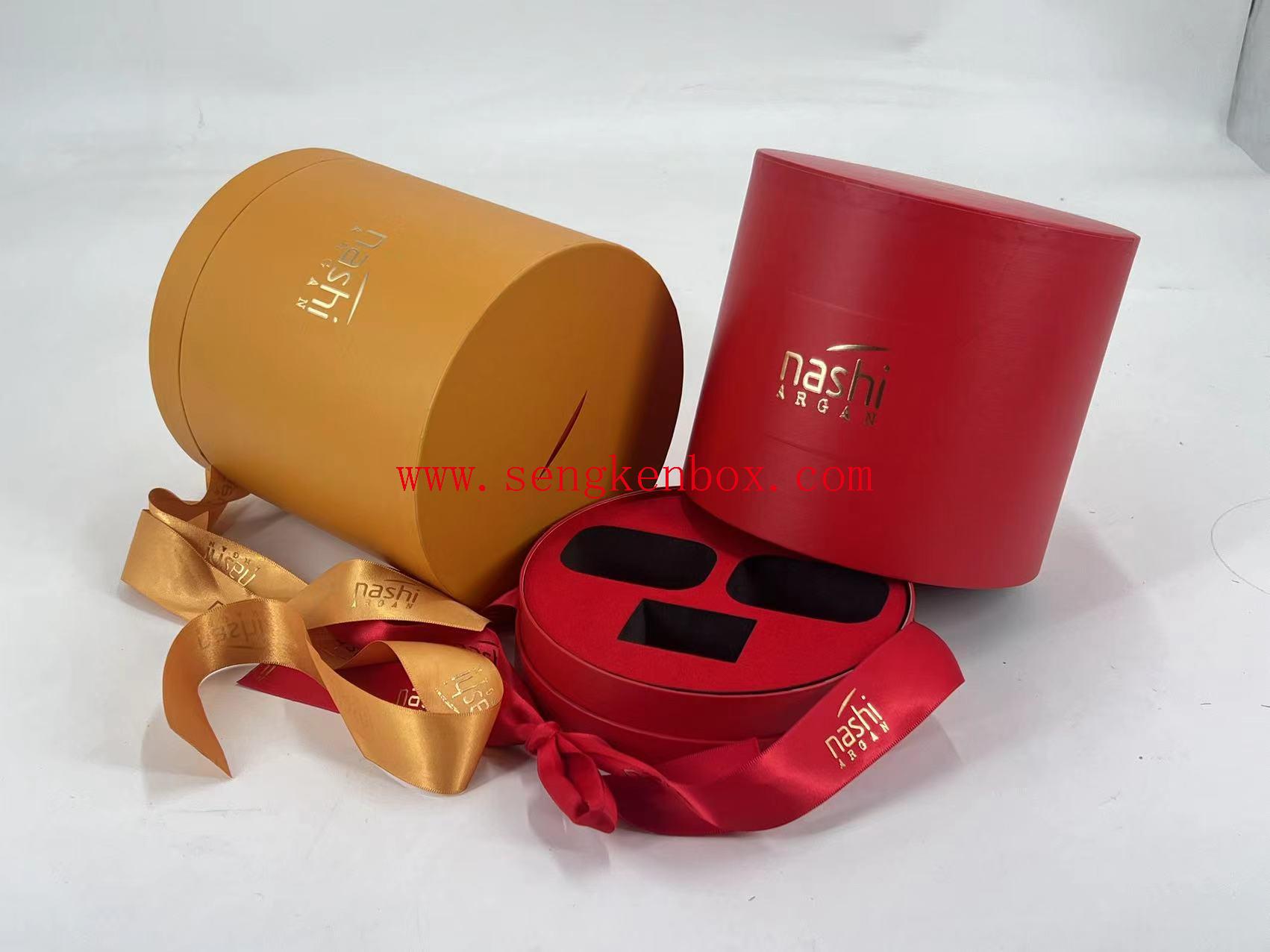 Depends on the quantityRound Gift Box with Silk Ribbon Cosmetic Products Boxes with Gold Stamping and EVA liner